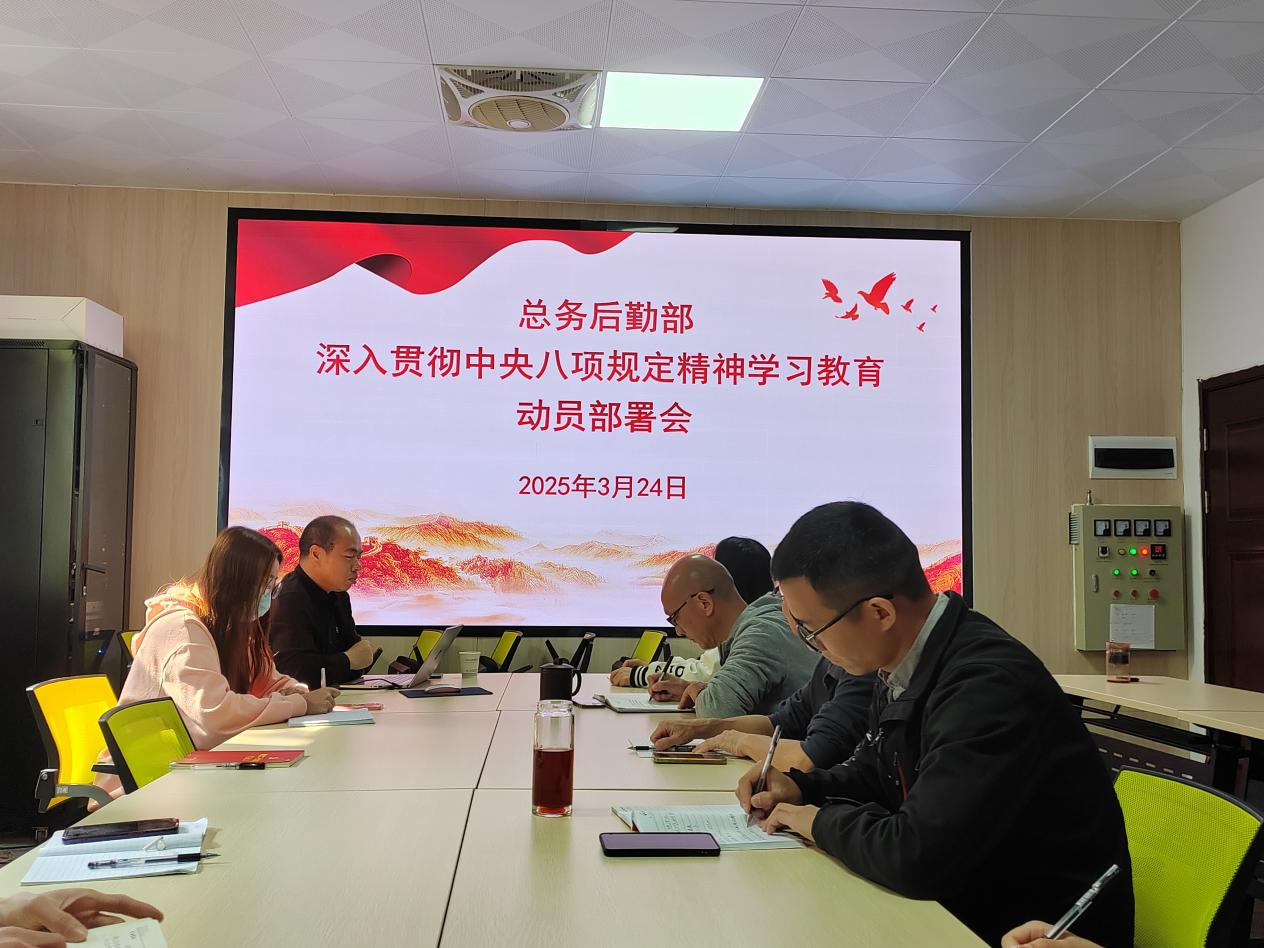 3月24日,总务后勤部党支部召开深入贯彻中央八项规定精神学习教育动员部署会,支部书记詹训进主持会议,支部全体党员和入党积极分子共计14人参加会议。