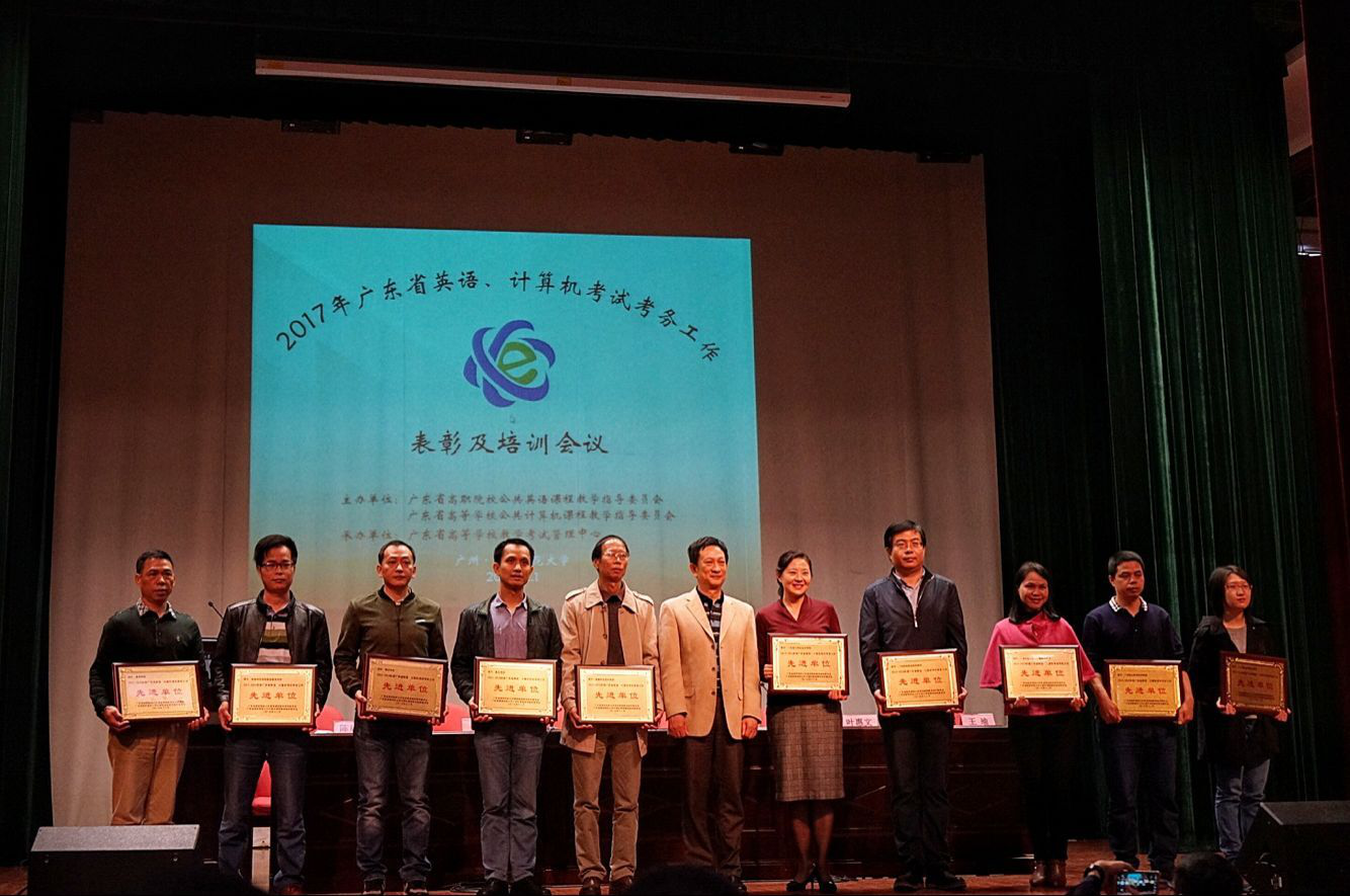 根据广东省高职院校公共英语课程教学指导委员会、广东省高等学校公共计算机课程教学指导委员会关于组织高等学校英语应用能力考试、计算机水平考试考务工作表彰及召开考务培训会议的通知,经学校和个人自评、省考试管理中心集中评审,全省共评出2012-2016年度考务工作先进单位20个、优秀个人40名,共60项。我院被评为2012-2016年度广东省英语、计算机考试考务工作先进单位,赖文俊老师荣获实验员系列优秀个人称号。