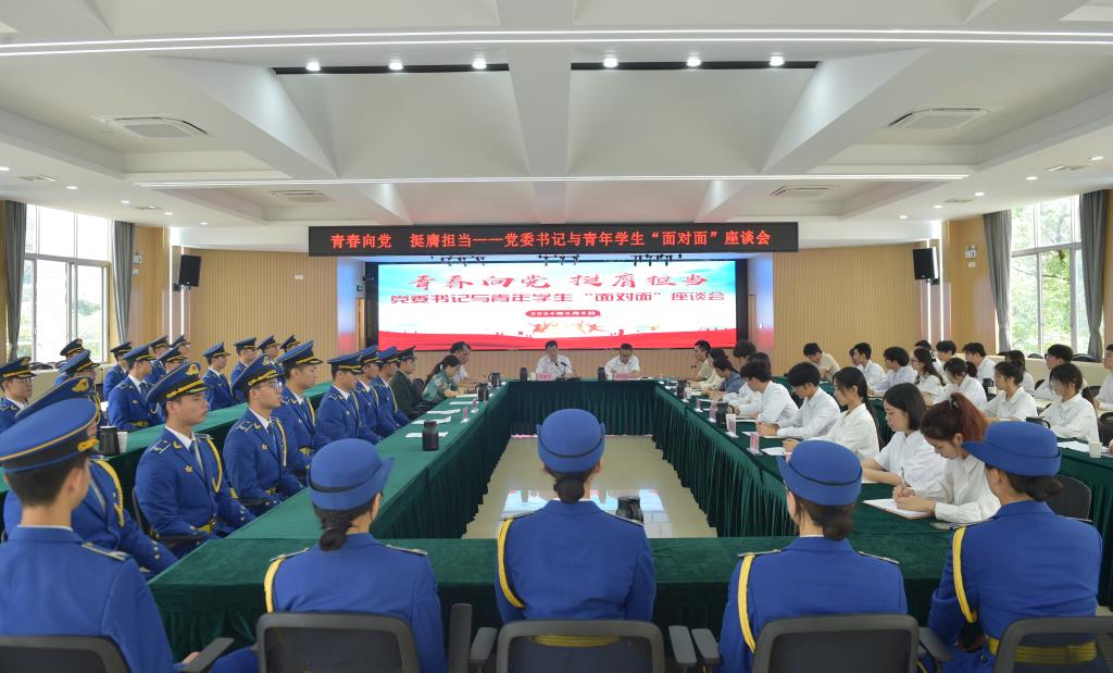 6月6日,我校在宽C201召开党委书记与青年学生“面对面”座谈会,党委书记方迎生与青年学子面对面交流,认真学习贯彻习近平总书记五四重要寄语精神,倾听大家心声,并提出殷切期望。党委宣传部、党委学生工作部、总务后勤部、党委保卫工作部、校团委等相关部门负责同志以及国旗护卫队全体队员、各二级学院优秀学生代表参加座谈会。