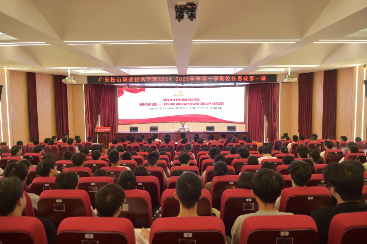 课上,吴奇峰围绕“改革开放后,党的历届三中全会都是研究改革”“党的二十届三中全会统筹国内国际两个大局,进一步全面深化改革”“学习党的二十届三中全会精神,推动松山学院改革迈向深处”三个方面,梳理回顾了改革开放以来历届三中全会的基本情况,全面解读了党的二十届三中全会《决定》,并结合职业教育发展浪潮,讲解了学校近年来改革发展的具体措施及成效。