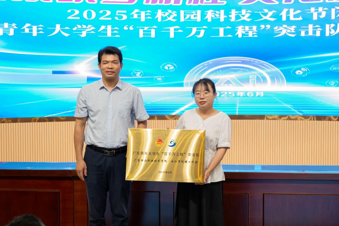 6月26日下午,我校2025年校园科技文化节闭幕式暨青年大学生“百千万工程”突击队行动动员大会顺利举行。学校党委副书记张林茂出席活动,团曲江区委书记李洁婷、曲江区罗坑镇党委委员孟芳以及学校相关职能部门负责同志和各二级学院党总支负责同志、团委书记、师生代表共同见证科技文化成果,吹响乡村振兴青春号角。