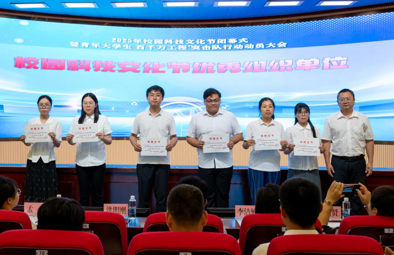 学校团委书记李娟宣读了本届校园科技文化节表彰文件,组织宣传统战部部长洪明刚为获奖单位颁奖,激励师生持续深耕科技创新与文化传承。