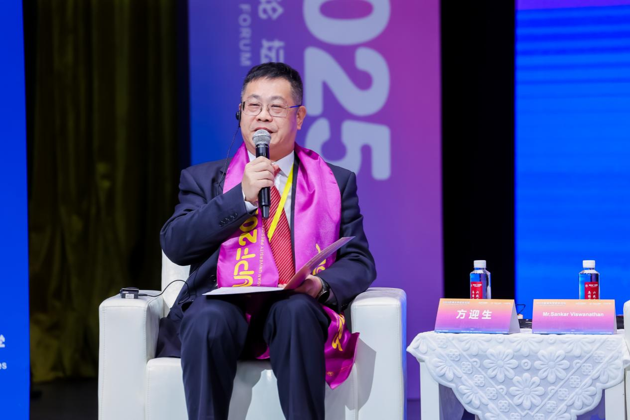 21日上午,方迎生出席了亚洲大学校长论坛开幕式暨全体大会,与来自亚洲各地的大学校长们共同开启这场教育思想的盛宴。21日下午,方迎生参加了亚洲大学校长论坛主题沙龙,并担任“新技术与跨部门协同:开创亚洲高等教育韧性与包容性增长的新路径”主题讨论的发言嘉宾兼小组主持人,与亚洲高校校长围绕高等教育的前沿话题展开深入交流与探讨。