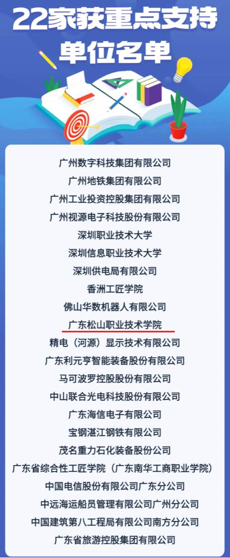 近日,广东省总工会公布了2025年重点支持工匠学院名单,广东松山职业技术学院工匠学院名列其中,是22家入选单位中仅有的三所职业院校之一。这也是继今年8月份被确定为韶关市总工会2025年重点支持的工匠学院(共8家)后,再获省总工会确定为重点支持工匠学院,将获得100万元专项补助资金。