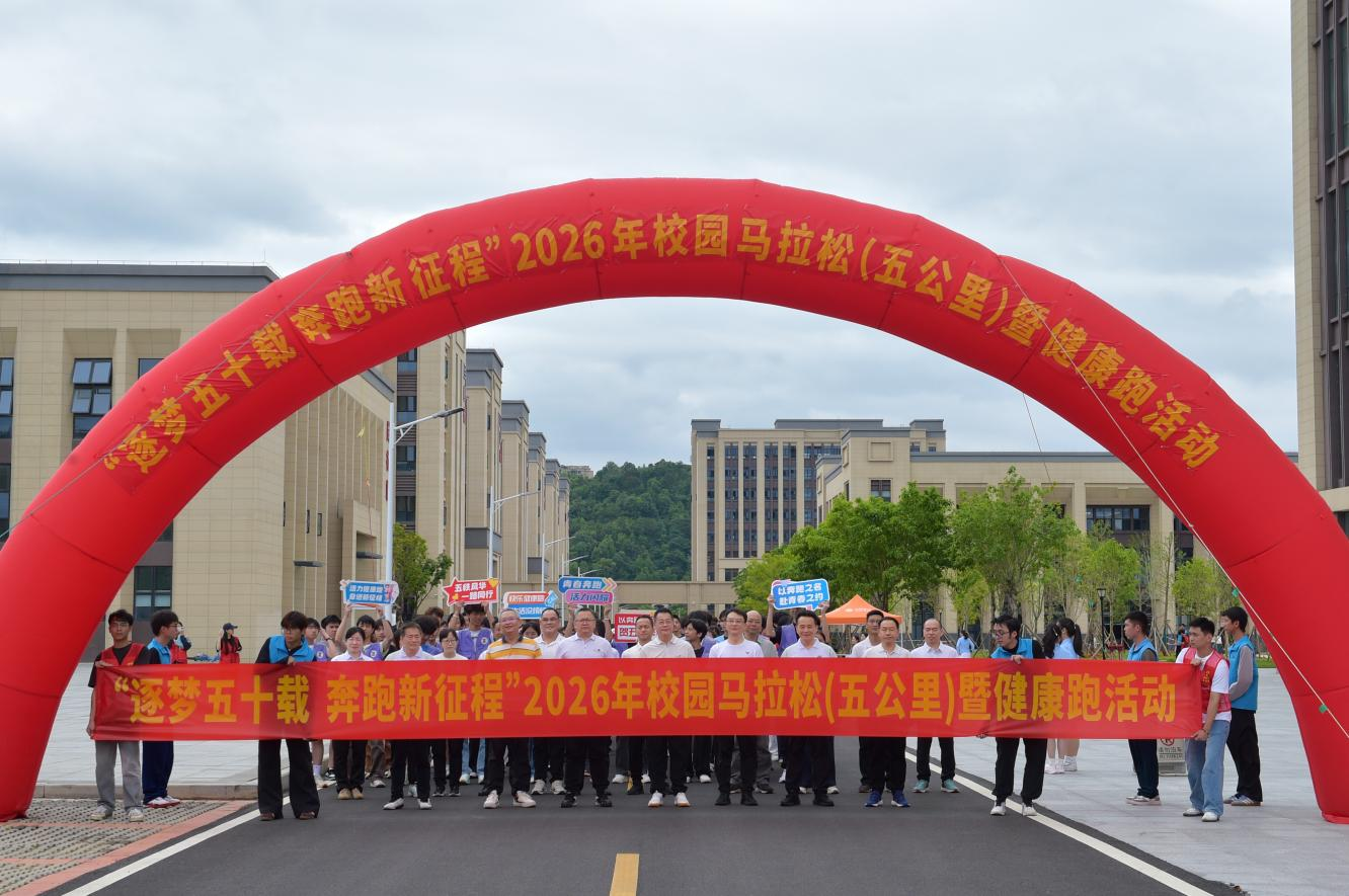为迎接建校50周年,进一步丰富校园体育文化内涵,4月23日,“逐梦五十载 奔跑新征程”2026年校园马拉松(五公里)暨健康跑系列活动在广东松山职业技术学院莲花校区正式拉开帷幕。校领导方迎生、杨宇、洪明刚、张志、郭浩东、徐耀鸿、谢臣英出席主会场开跑仪式,相关职能部门负责人、各二级学院党总支书记及师生代表300余人共同参加。与此同时,曲江、浈江两校区同步鸣笛起跑,三校区师生以奔跑之名,向母校五十华诞献上青春礼赞。