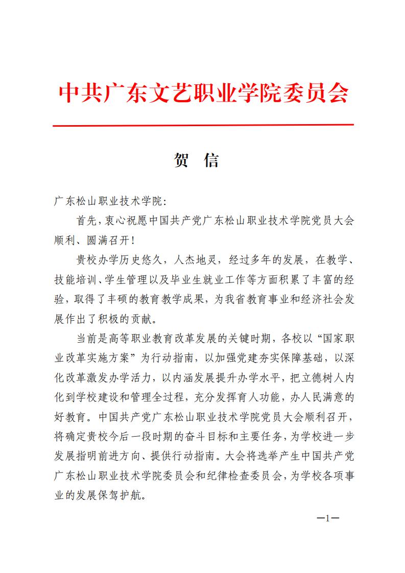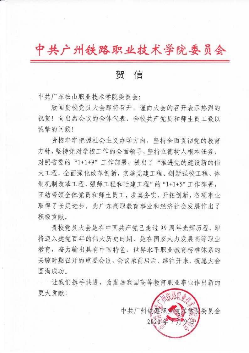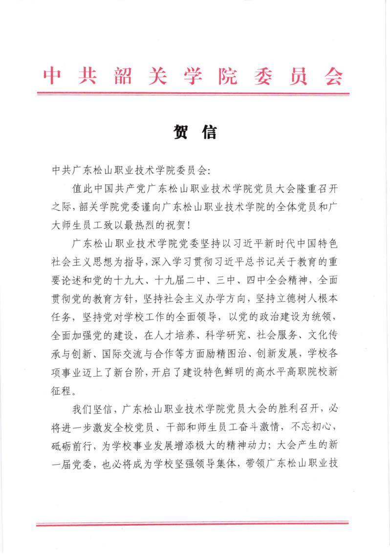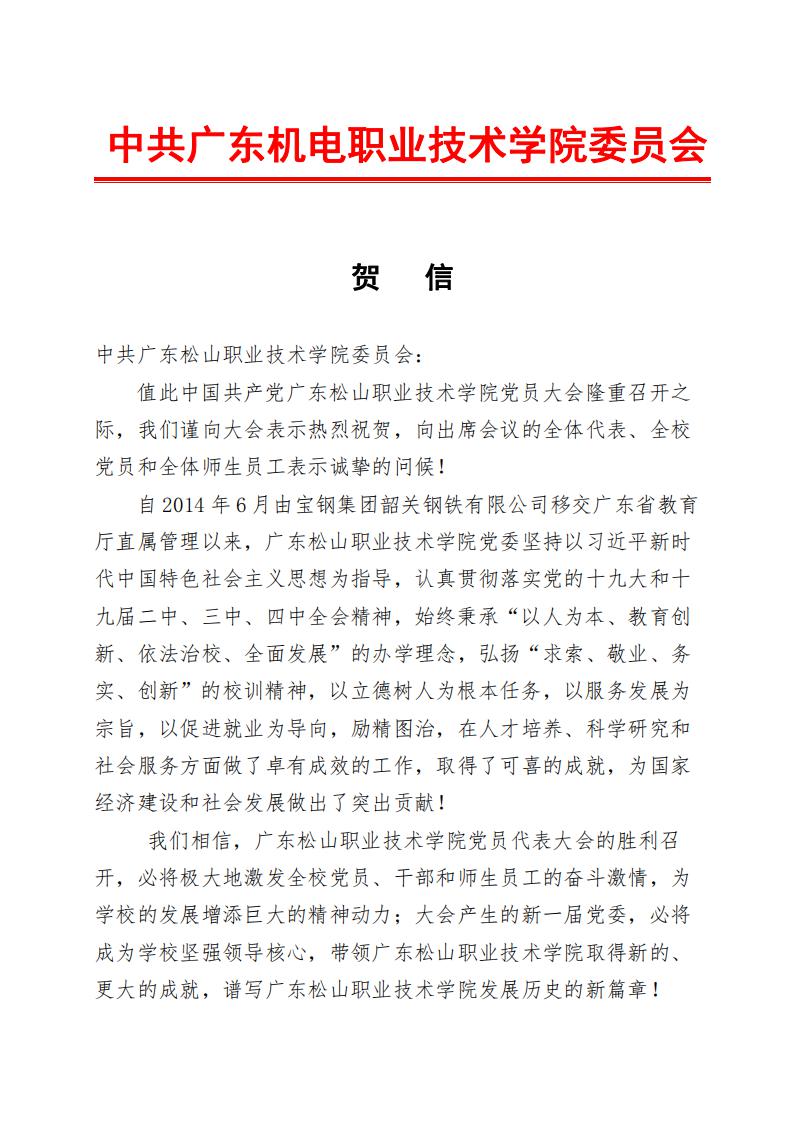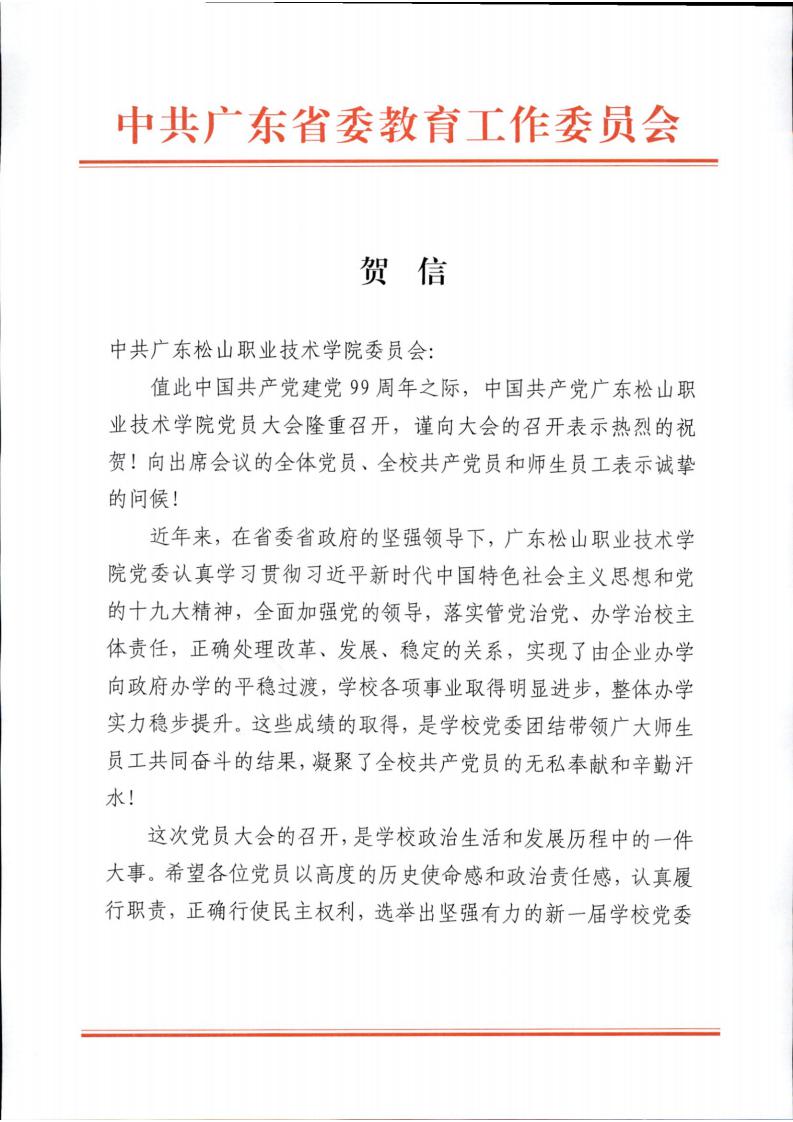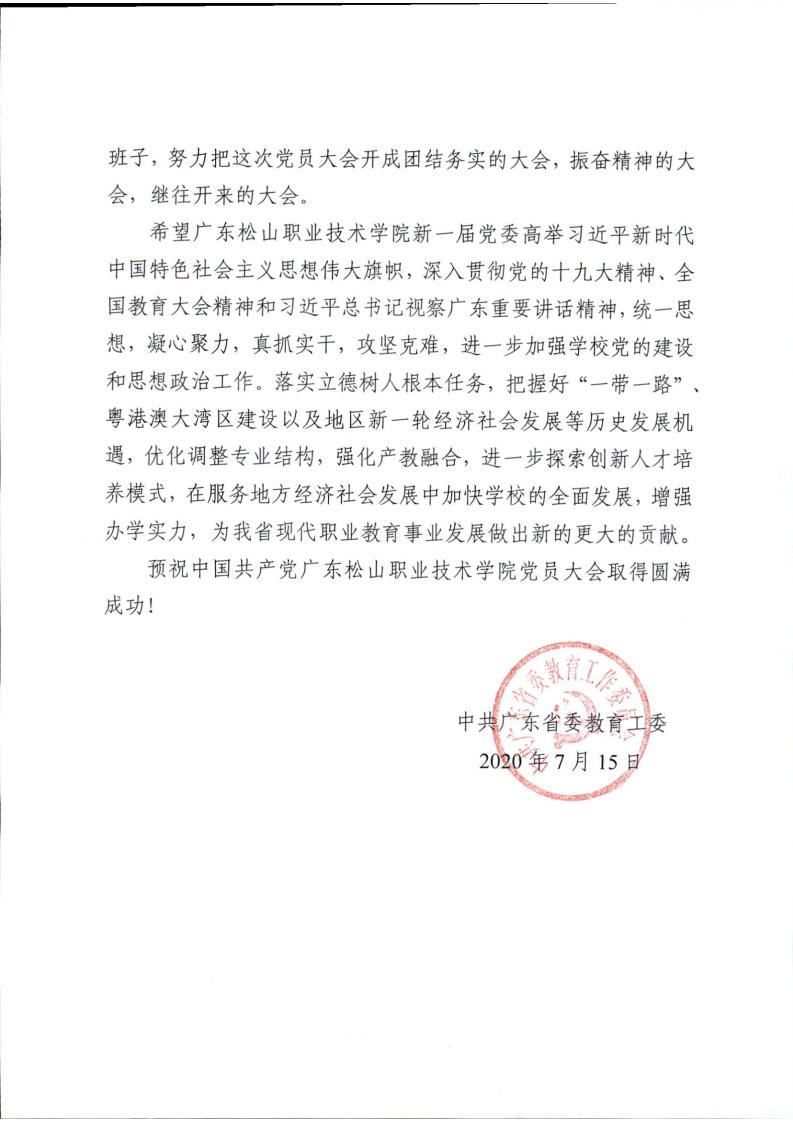省教工委致广东松山职业技术学院党员大会贺信