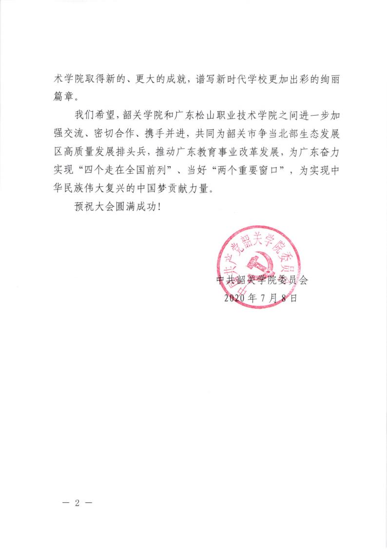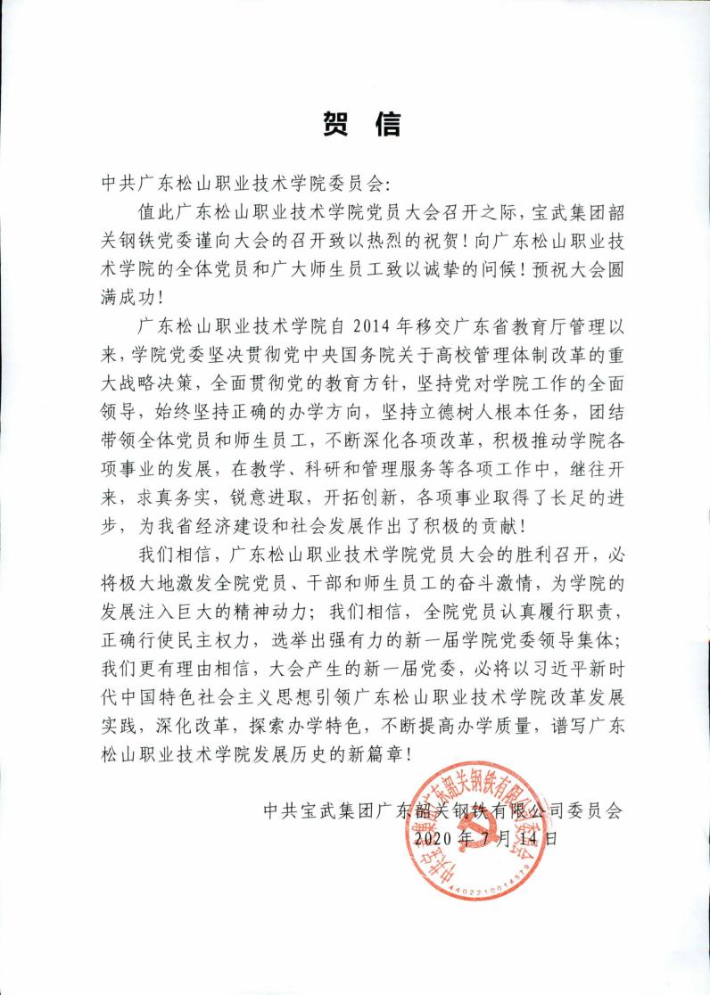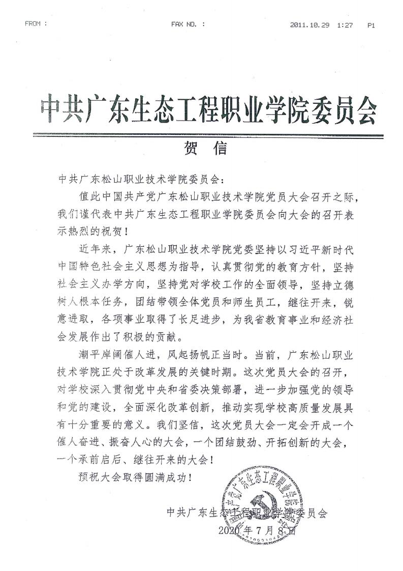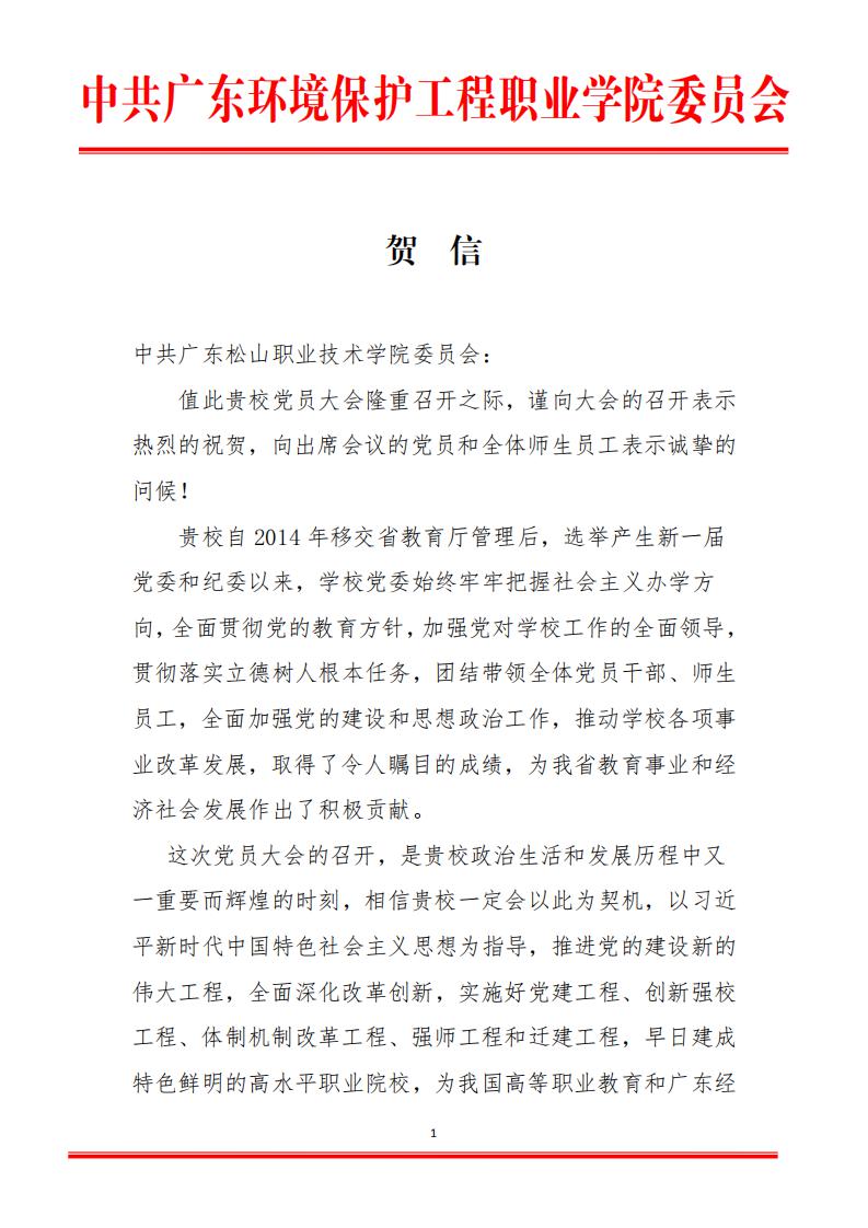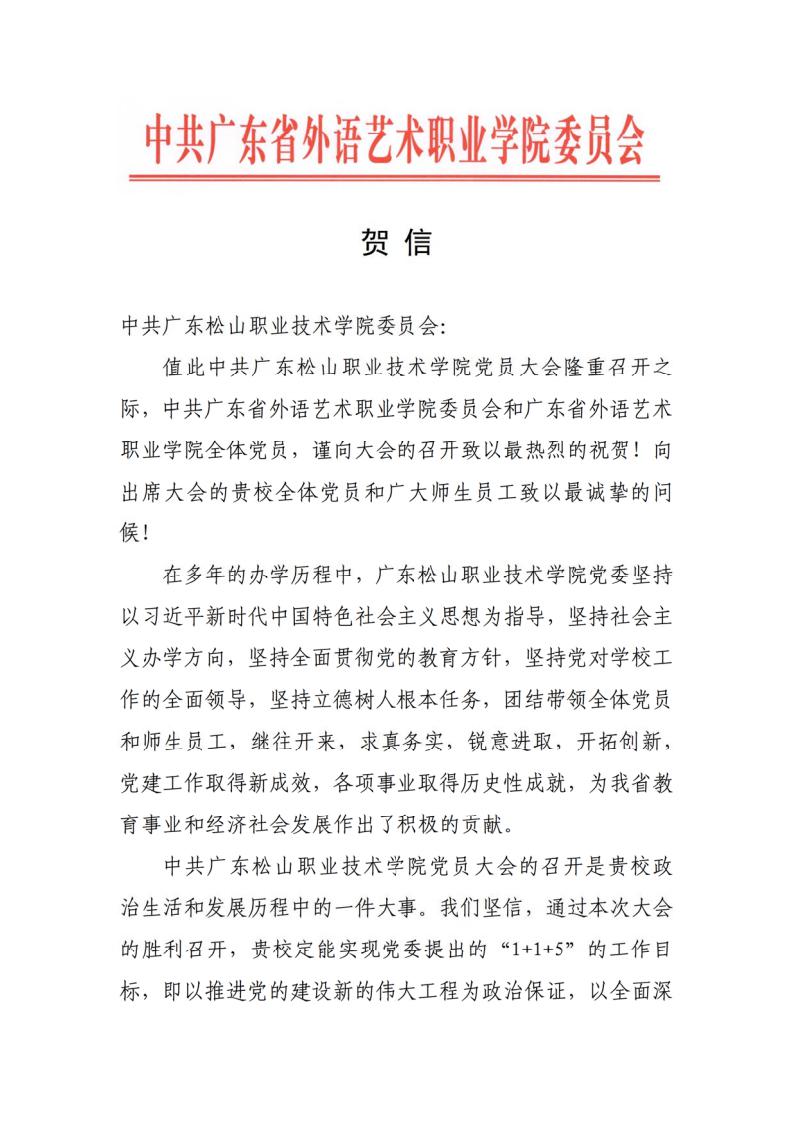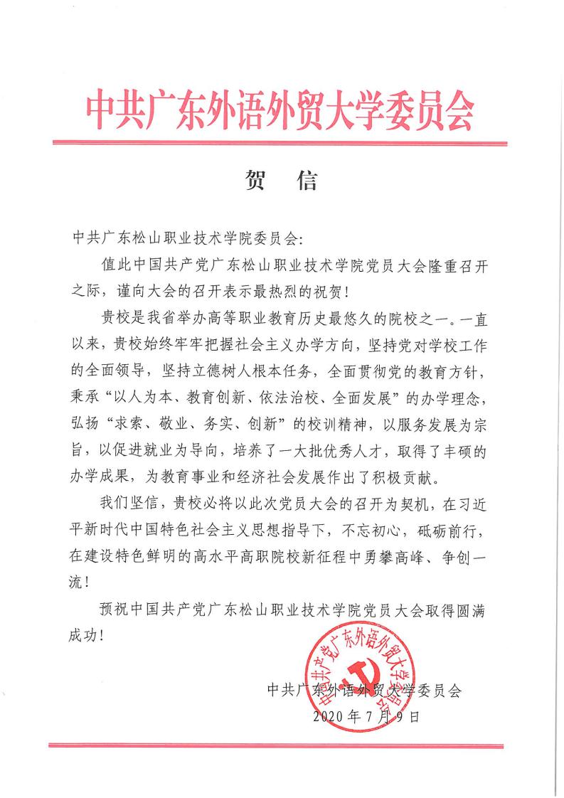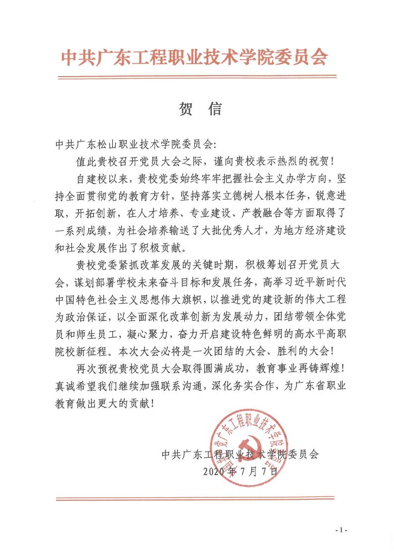 省教工委致广东松山职业技术学院党员大会贺信