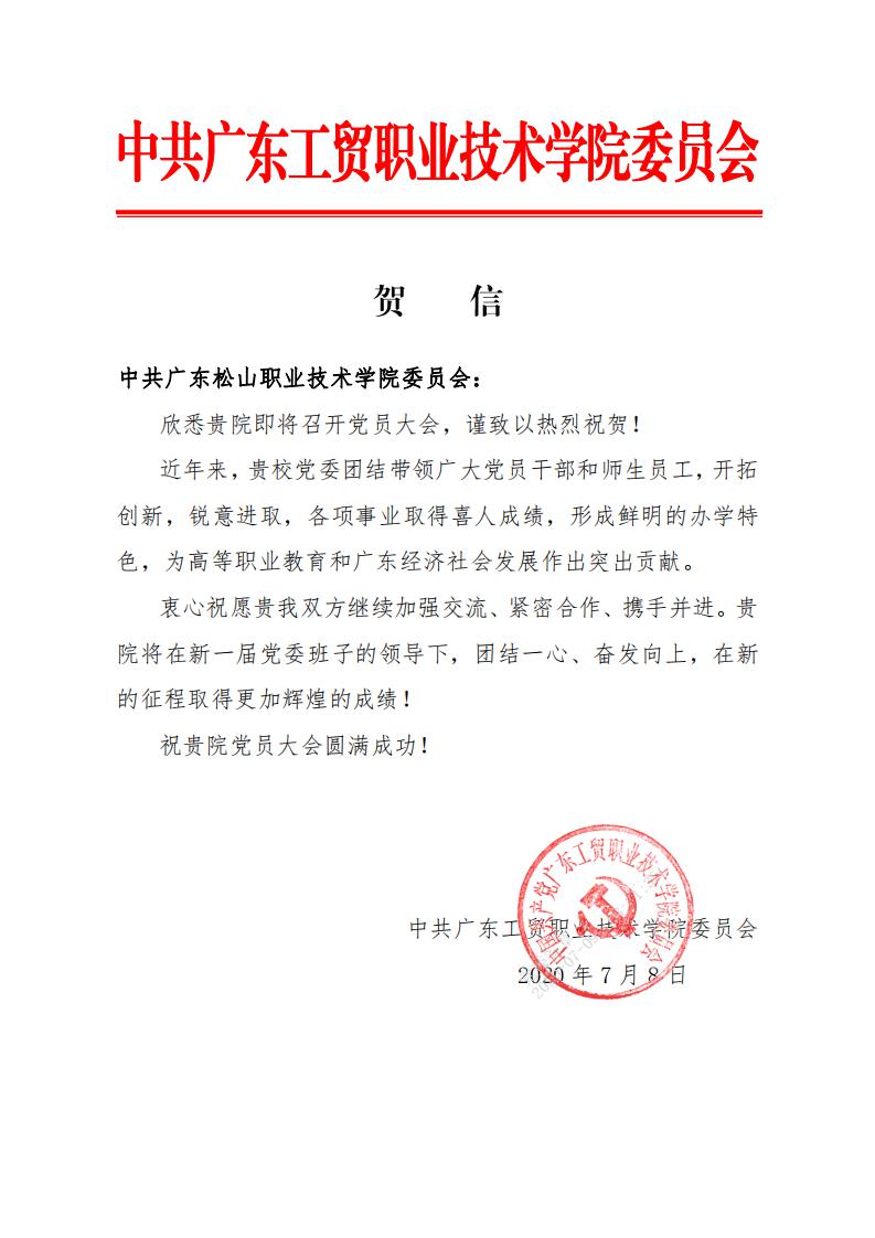 广东工贸职业技术学院贺信