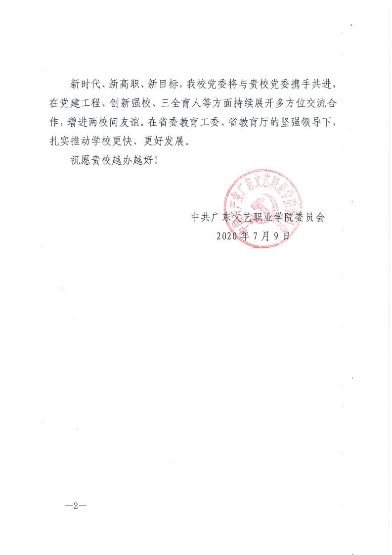 广东文艺职业学院贺信