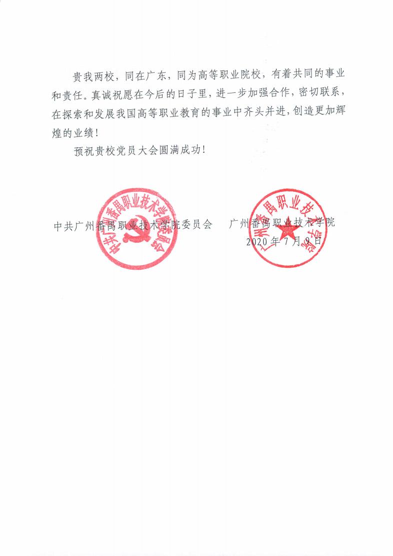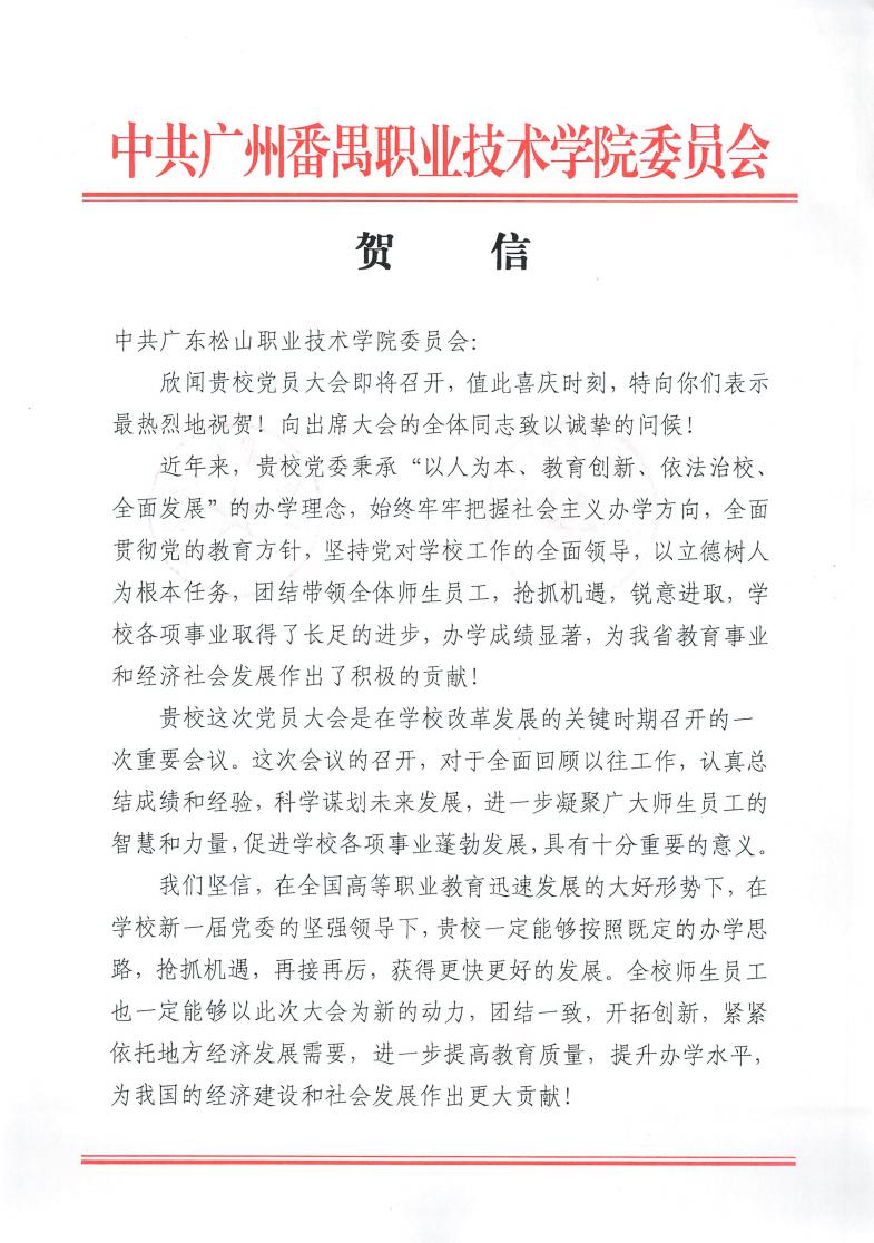 广州番禺职业技术学院贺信