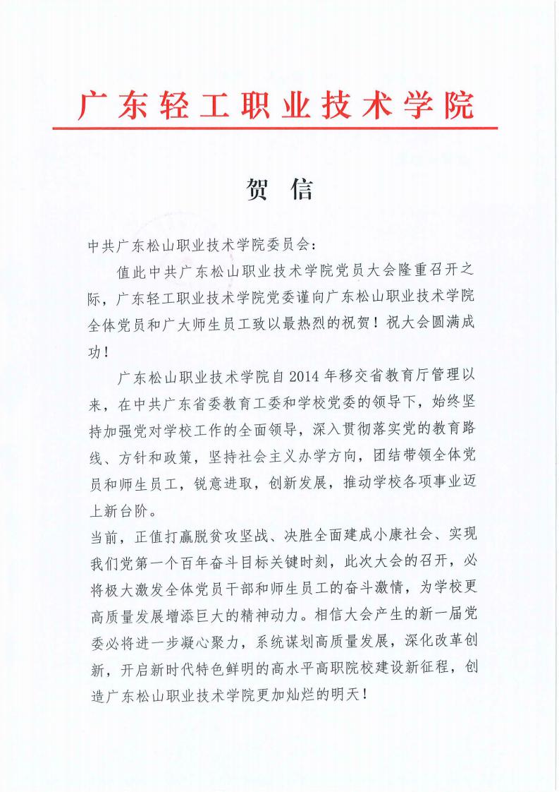 广东轻工职业技术学院贺信