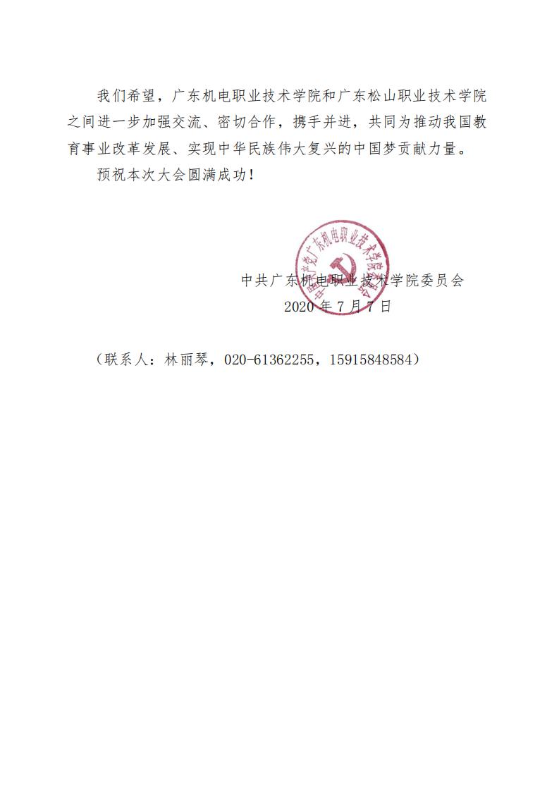 广东机电职业技术学院贺信