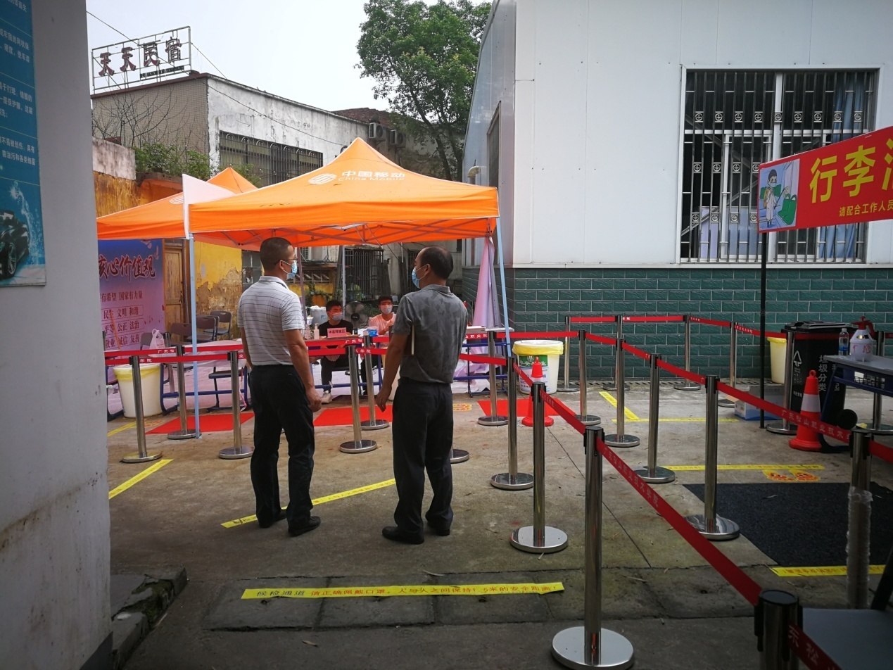 专家在学生返校门岗检测区现场查看和指导