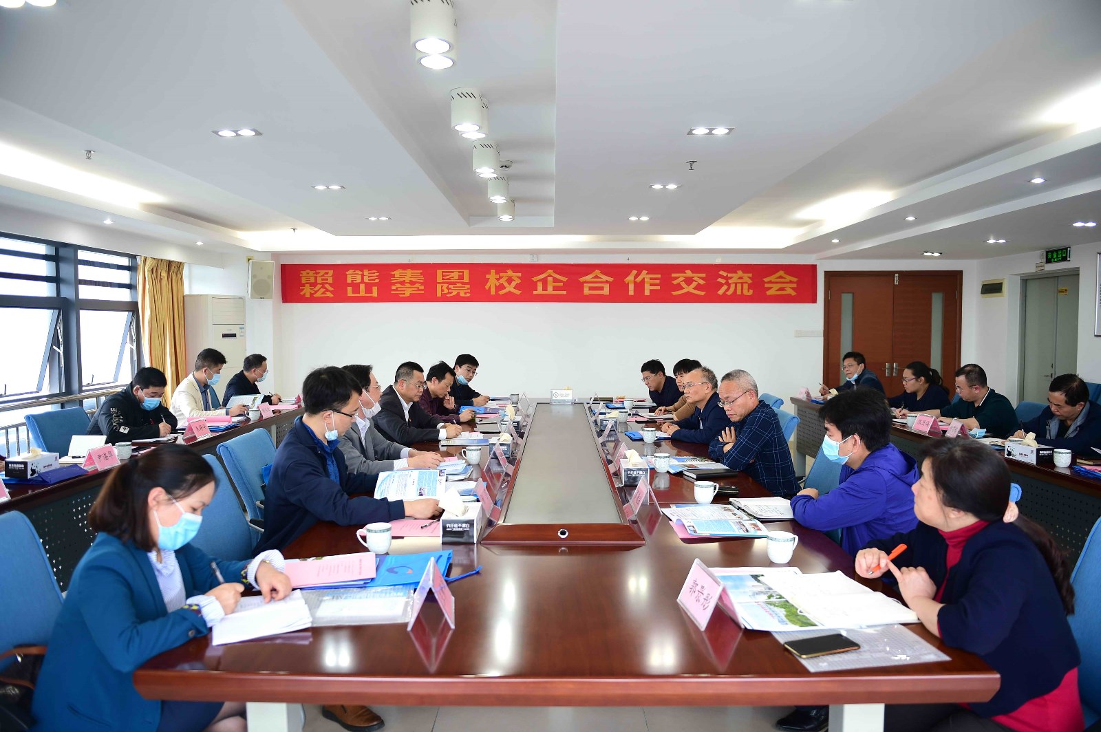 会上,双方与会人员分别就共建实验实训基地、教育培训基地、创新型实践基地以及课题申报等相关合作事宜进行了深入沟通交流,基于我校机械工程学院、电气工程学院与韶能集团在专业和生产上高度契合,双方在生产线设备装配、维护维修,生产科研的联合攻关,顶岗实习和毕业生需求及技术人员系统培训等诸多方面合作交流达成了共识。