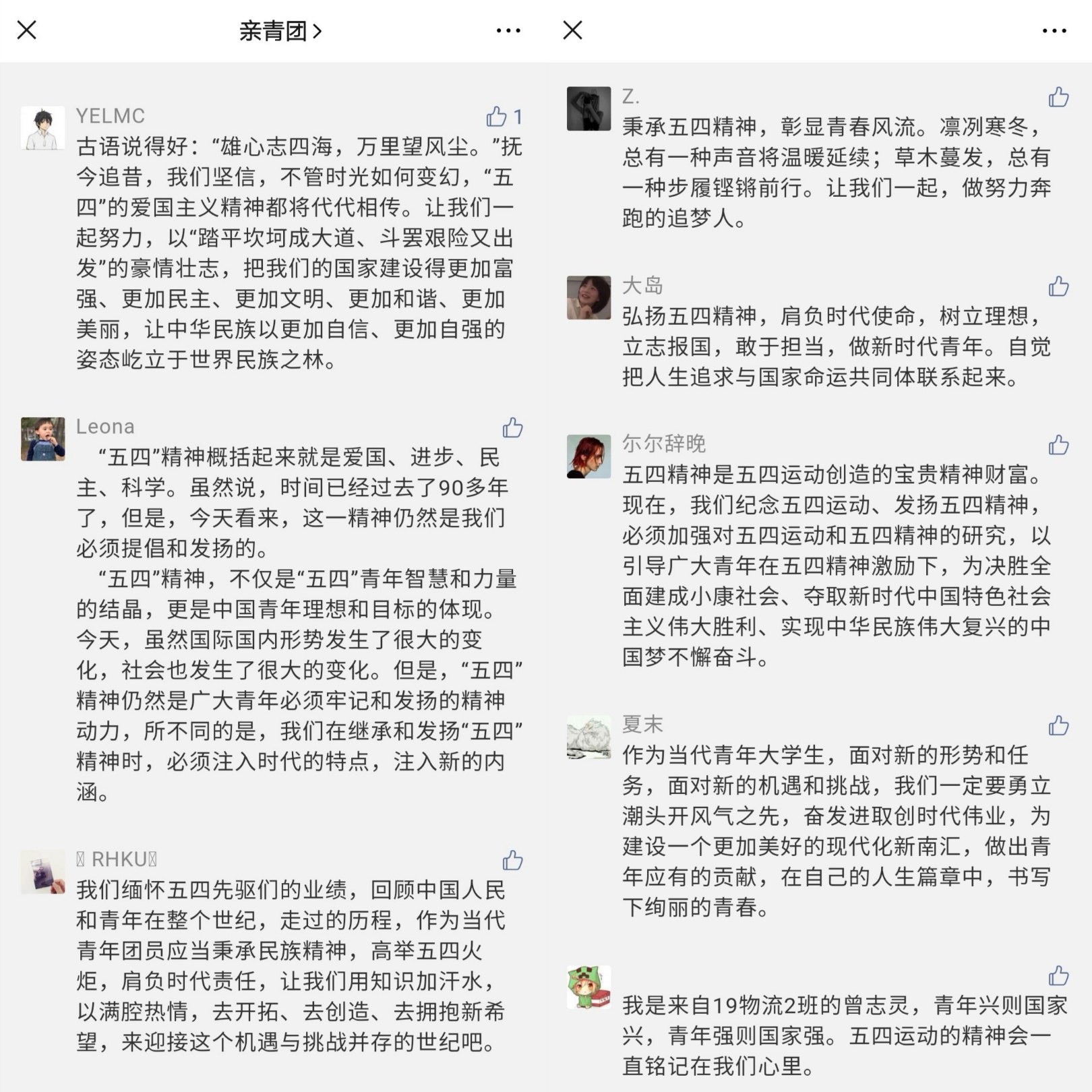 本次活动依托学校团委官方微信公众平台线上开展。活动中不仅展示了“五四”运动的历史文化,宣传了新时代青年抗疫事迹,还设置了“五四”知识线上答题环节。团员青年们纷纷在评论区发表感言,在“云端”形成了了解“五四”精神、缅怀“五四”先驱的学习热潮。