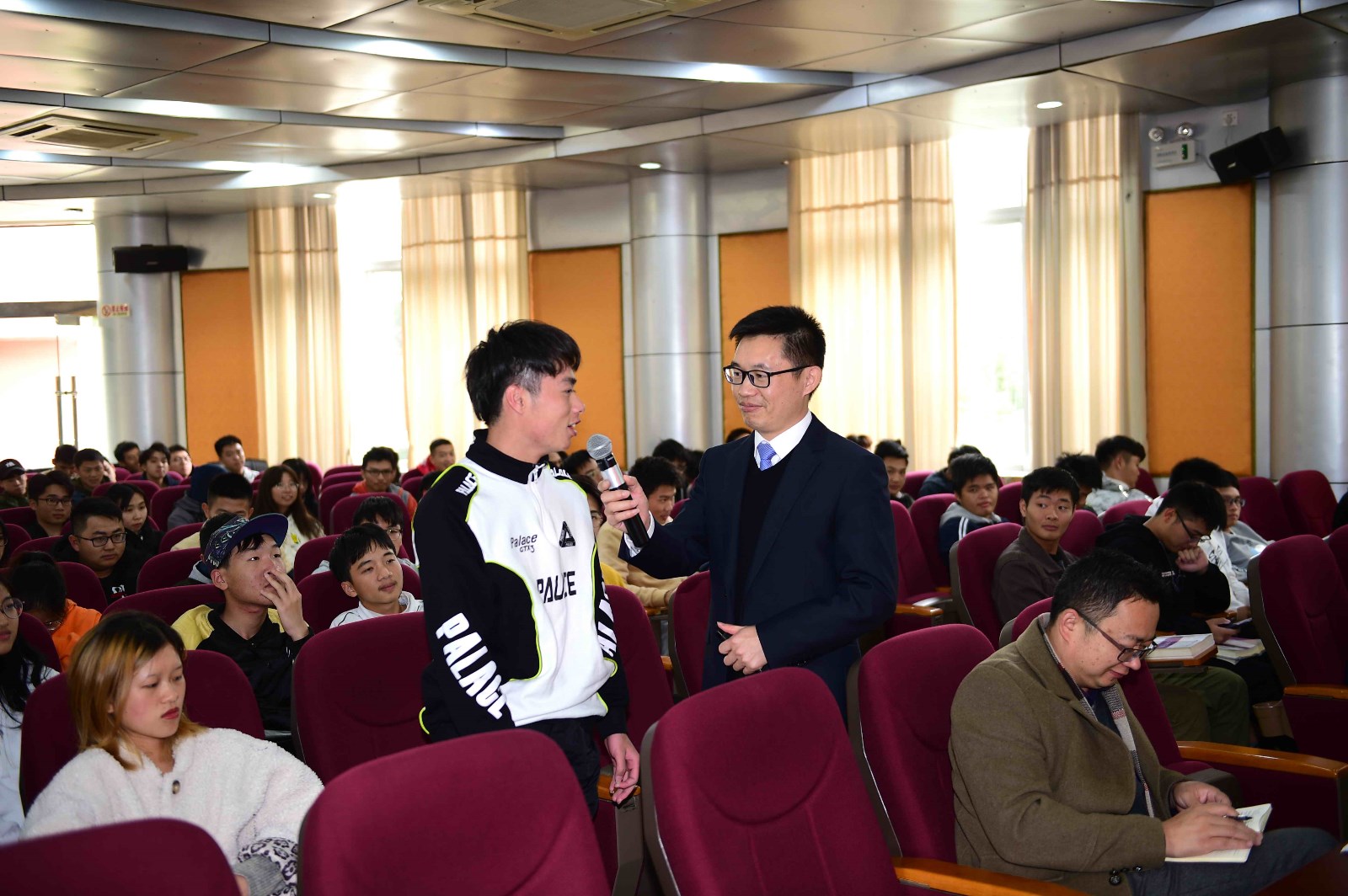 江律师从历史上“商鞅变法”的故事切入,解读了我们现在进入了依法治国新时代、宪法作为根本大法的重要性,着重用一些详实的案例讲解了和大学生相关的法律知识,以提升大学生的法治思维。在互动环节中,同学们踊跃参加,现场气氛活跃。他在讲课中指出,希望大家进一步树立法律信仰,增强法治观念,提高宪法意识,培养法治思维,在日常的工作、学习、生活中自觉与法同行,养成尊崇法律、敬畏法律、自觉守法、遇事找法、解决问题靠法的思维习惯和行为方式,做一名守法公民。