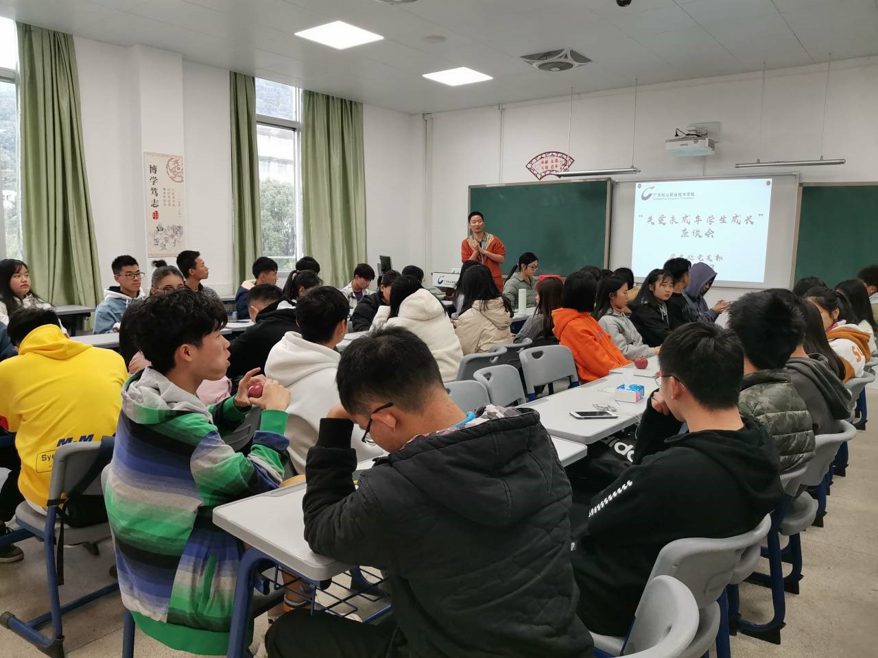 12月6日,学生处带领各系未成年学生与指导老师50人,参观了韶关市人民检察院未成年人司法与保护中心,检察官深入浅出地介绍了当前环境下未成年人成长过程中面临的诱惑与风险以及未成年人司法保护中心的工作内容,并详细介绍了检察院等国家机构为未成年人成长所提供了法律与政策支持。所有参与的未成年学生在法制教育、模拟禁毒游戏、法治宣传教育的体验式活动中,感受到了法律的威严与温情。