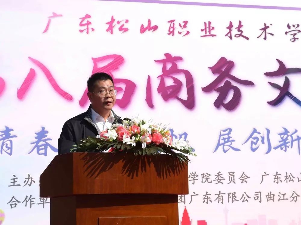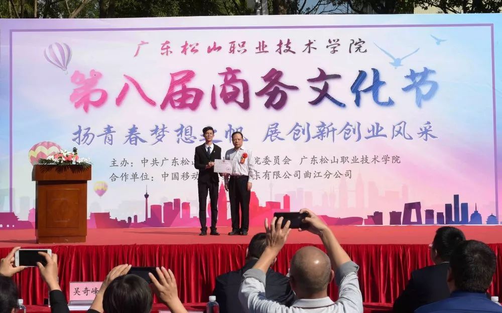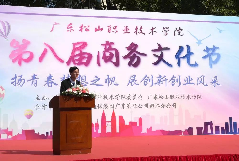 11月1日下午,广东松山职业技术学院迎来了一年一度的校园文化盛事——第八届商务文化节开幕。学院领导方迎生、吴奇峰、廖彩志、佘少华,中国移动曲江分公司副总经理蓝俊峰出席开幕式,学院各处室系部师生代表参加开幕式并观看精彩的文艺表演。