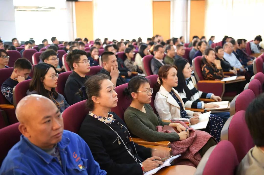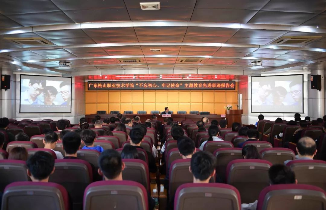 为深入推进“不忘初心、牢记使命”主题教育,用身边人身边事教育影响身边人,突出典型教育作用,进一步营造学习先进典型的氛围,形成学先进、当先进的良好风尚,10月31日下午,广东松山职业技术学院在宽C201学术报告厅举办主题教育事迹报告会,全国优秀教师魏志丽,南粤优秀教师、韶关市工匠李福运,南粤优秀教育工作者杨宇老师作了事迹报告。学院领导,中层干部,党支部书记,各职能部门、五系师生党员代表共180人参加报告会。主题教育办主任、副院长廖彩志主持报告会。