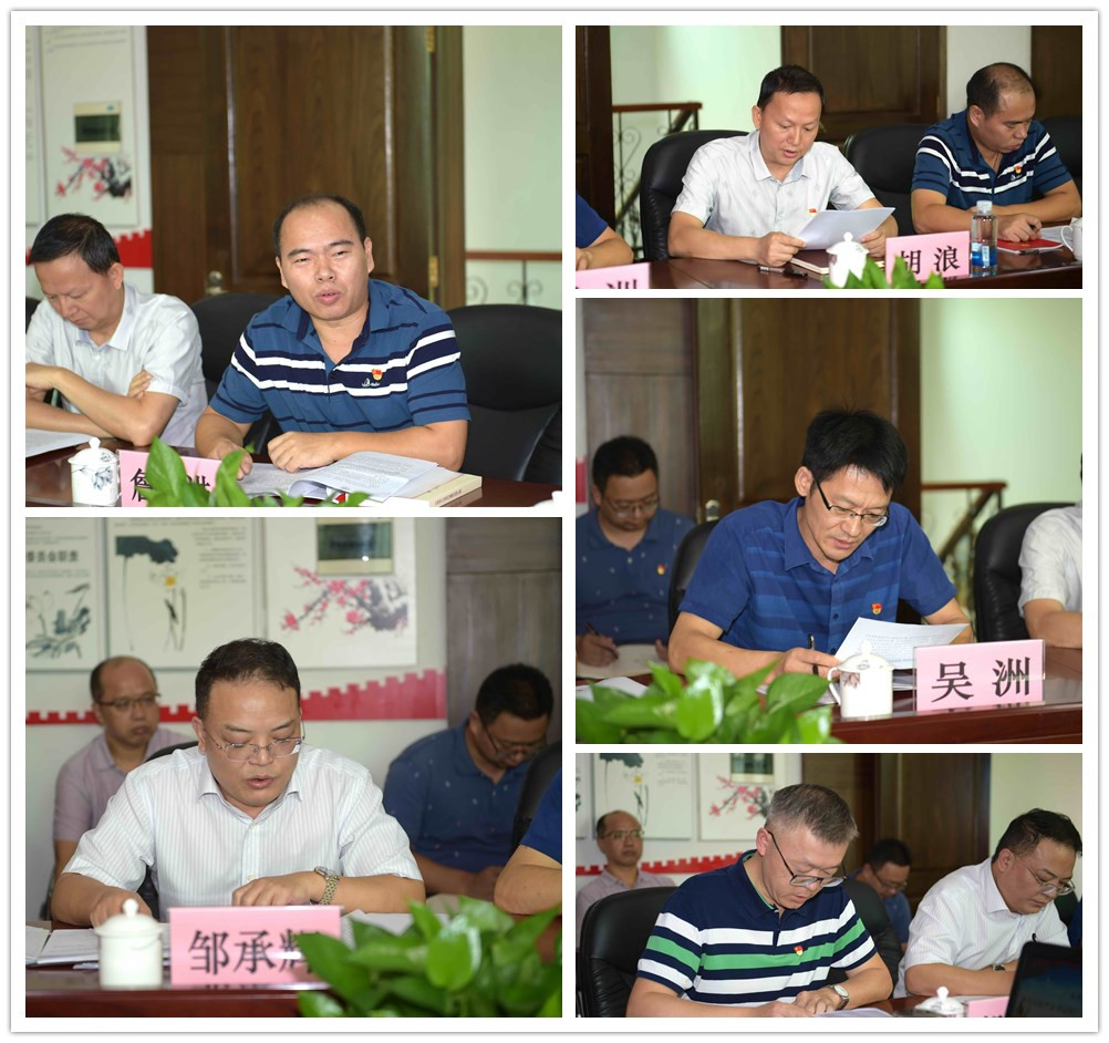 学院中层正职干部詹训进、胡浪、吴洲、邹承辉、胡开明结合各自岗位的工作实际分别作了重点发言和交流发言。