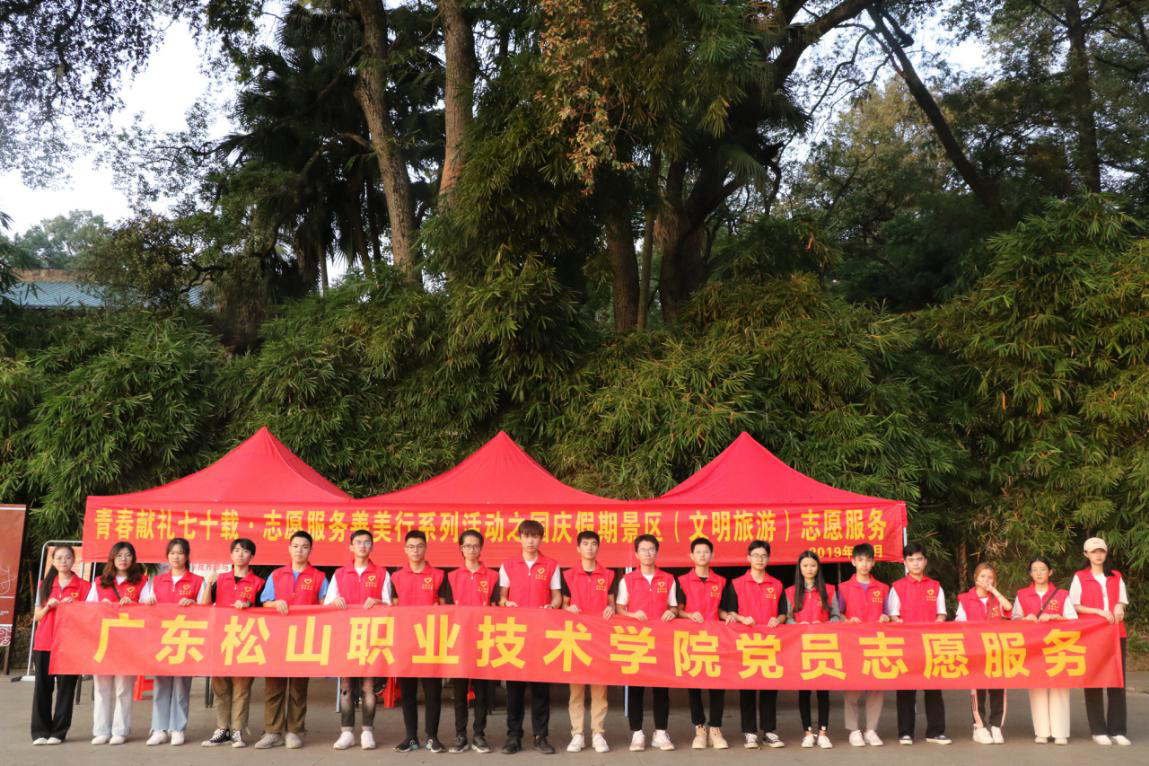 为热烈庆祝中华人民共和国成立70周年,凝聚师生党员和青年志愿者力量,用志愿服务献礼祖国,结合我院“不忘初心、牢记使命”主题教育,认真落实“守初心、担使命,找差距、抓落实”的总要求,坚定理想信念,增强青年党员为人民服务意识,我院组织师生党员和青年志愿者共80余人,利用国庆假期开展了为期三天的“青春献礼七十载 志愿服务善美行”志愿服务活动,分别在南华寺和马坝人遗址设置志愿服务点,积极开展旅游信息咨询、文明引导、秩序维护、扶老携幼等志愿服务,并免费为游客们提供饮用水和爱心药箱。