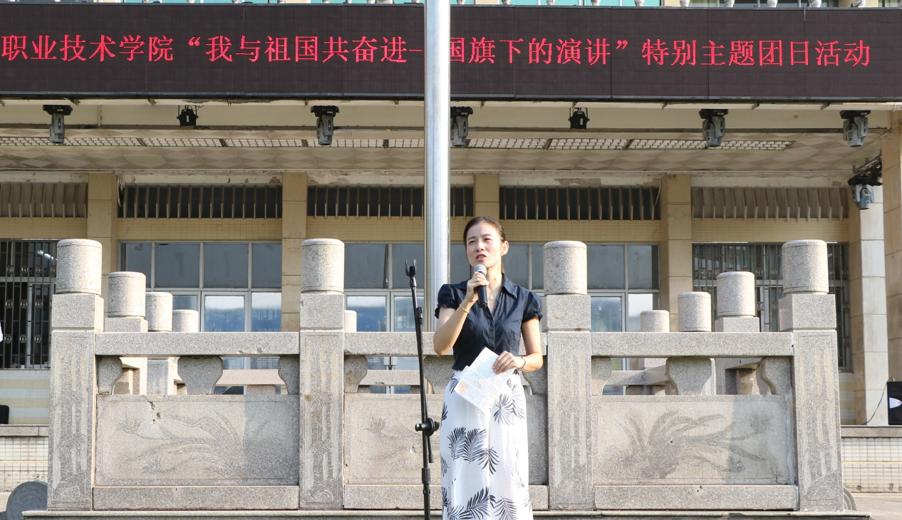 为隆重庆祝中华人民共和国成立70周年,大力唱响礼赞新中国,奋进新时代的青春主旋律,同时纪念“九一八”事变88周年,加强大学生的爱国主义教育,教育引导青年学生铭记历史、勿忘国耻、发奋图强。9月18日,学院团委组织开展“我与祖国共奋进——国旗下的演讲”特别主题团日活动。各系团委书记、团员代表共500余人参加活动。