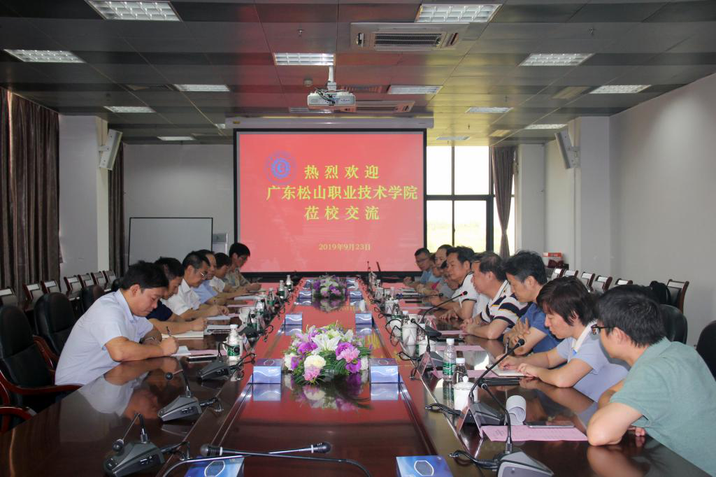 9月23日下午,广东松山职业技术学院党委书记方迎生,党委副书记、院长吴奇峰带领有关部门负责人奔赴广东机电职业技术学院北校区参观交流。机电职院党委书记蓝祥龙,党委副书记、校长郑伟光,副校长陈力捷、漆军,校级领导佘少华以及党政办、组宣部、教务处、财务处等部门负责人热情会见了客人们。