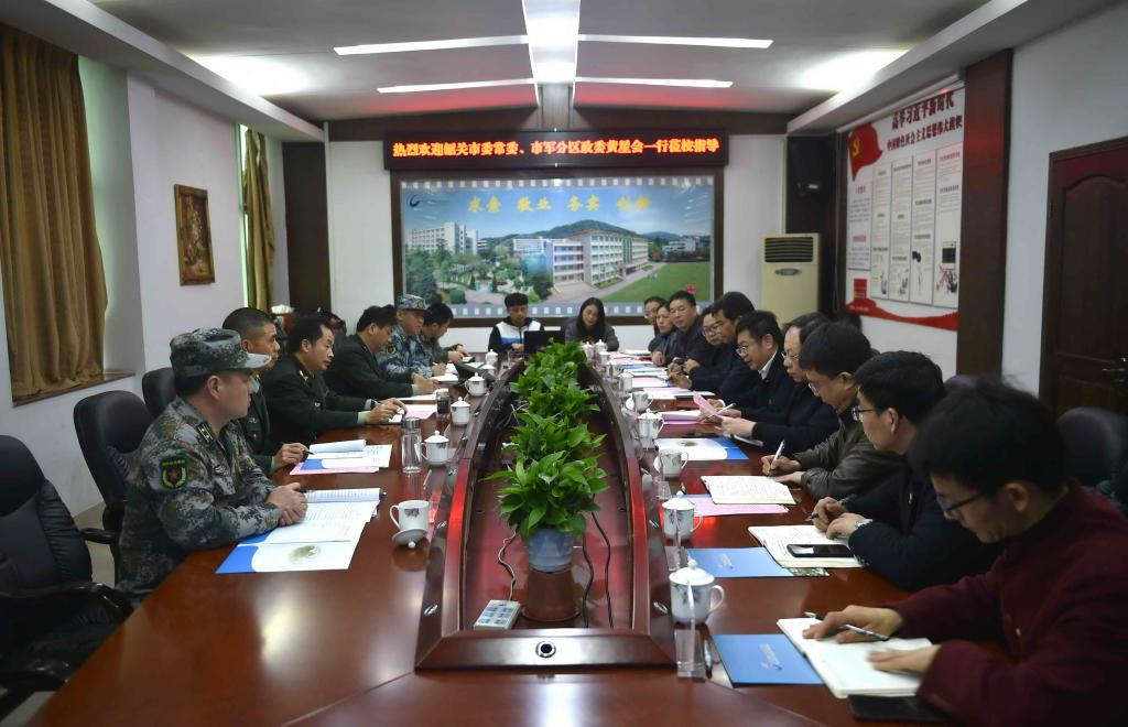 方迎生对黄星会一行到学校开展大学生征兵工作调研表示热烈欢迎,对韶关军分区、曲江区人武部长期以来给予学校的关心和帮助表示感谢;并就学校的办学历史、办学理念、办学特色、改革举措、人才培养、社会服务、师资队伍建设和加强党对高校的全面领导等方面所取得的成就进行了简要介绍。