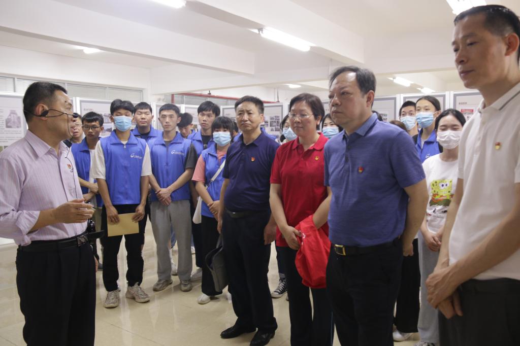 报告会结束后,双方与会人员一同参观了曲仁办事处工矿精神展区,张学仁同志向大家介绍了关于茶山矿、花坪矿、格顶矿等相关情况,进一步加深了党员师生们对曲仁矿发展历程的了解以及对韶关工矿精神的认同。
