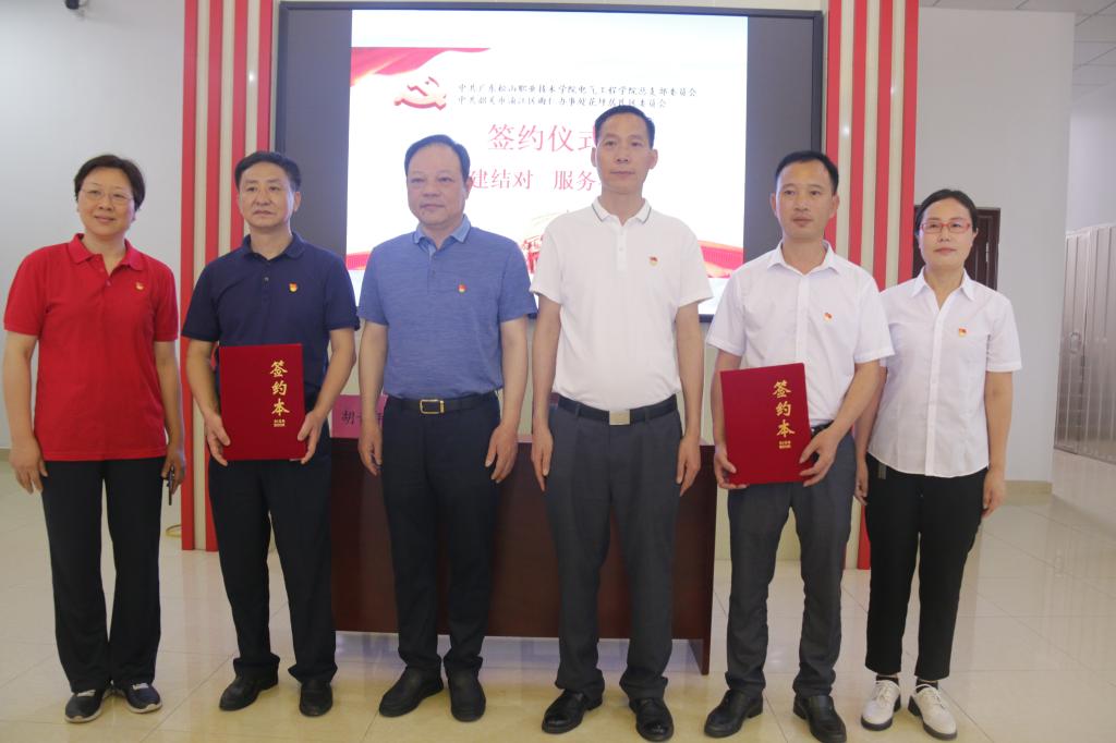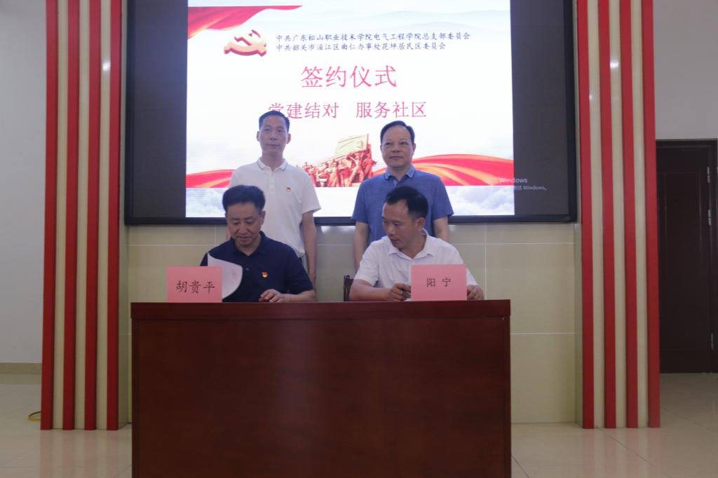 为认真学习贯彻习近平总书记在党史学习教育动员大会上的讲话精神,落实《中共韶关市委组织部印发<关于市直机关和企事业单位党组织到社区报到开展服务的工作方案>的通知》要求,进一步加强电气工程学院党建标杆院系建设,推动党史学习教育往实里处,切实做到“为群众办实事”,5月15日,电气工程学院党总支与浈江区曲仁办事处花坪居党委开展以“党建结对,服务社区”为主题的党建结对签约及志愿服务等活动。学校党委副书记、校长吴奇峰,浈江区曲仁党工委副书记、办事处主任廖灵,校纪委副书记、纪委办主任郑春玲等曲仁办及学校双方领导、电气工程学院党员及入党积极分子等共70多人参加了活动。