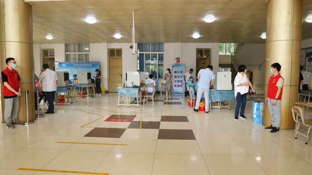 为积极响应国家接种新冠疫苗的号召,根据我校疫情防控工作整体部署,5月21日,学校第三场新冠疫苗免预约接种在宽字楼一楼临时接种点准时进行,此次疫苗接种工作预计3天完成,全体教职员工和学生将做到“应种尽种”。学校党委书记方迎生,校长吴奇峰,党委副书记谭春雨、张林茂率先完成了新冠疫苗接种。