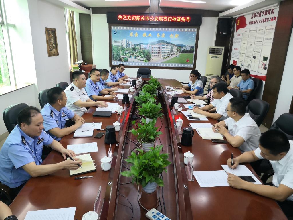 5月21日上午,韶关市公安局副局长谢玉田、网警支队支队长卢成俊、副支队长肖润坤、大队长黄利、新区分局副局长朱小伟、教导员余国强、警官王贤利、刑警支队反诈中心警官曾祠轩一行8人莅临我校开展网络安全、国家反诈等专项检查工作。党委副书记张林茂,党委宣传部、信息中心、党政办、学生工作部相关同志参加会议。