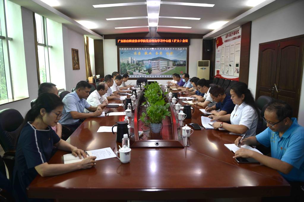 8月12日下午,我校在行政楼四楼会议室召开党委理论学习中心组(扩大)会议,深入学习习近平总书记在庆祝中国共产党成立100周年大会上的重要讲话精神。会议由党委书记方迎生主持。校领导吴奇峰、谭春雨、张林茂、廖彩志、杨宇等出席会议,韶关市委党史学习教育第九巡回指导组组长刘志福,组员沈晓花、王爱国到会指导,党政办、纪检室、组织部、各二级学院党总支负责人列席会议。