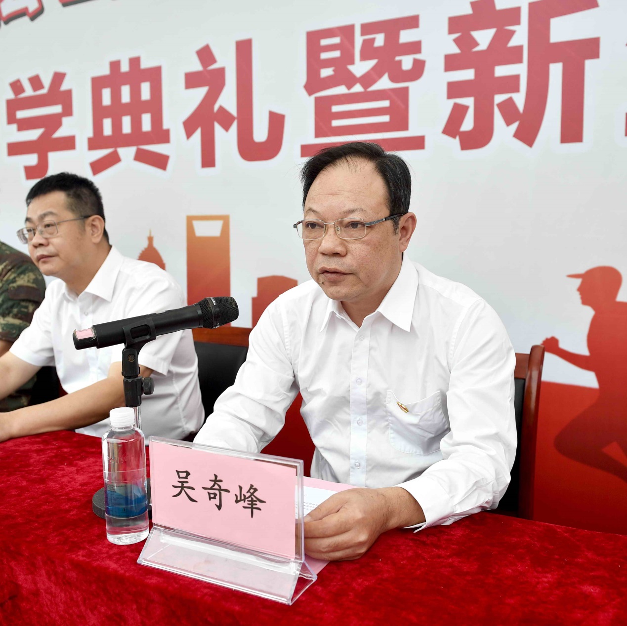 吴奇峰代表全校师生员工对2021级新生的到来表示热烈欢迎!他指出,我校自1976年创建至今,已有45年的发展历史。经过几代人的拼搏奋斗,学校现已形成了曲江校区、浈江校区“一体两翼,协调发展”的新格局;目前有全日制在校生近15000人,教职工500余人;设有8个二级教学院部,开设44个专业,有省级以上重点专业、高水平专业群、实训基地、工程技术研究中心等25个,市级工程技术研究中心3个;是2021年度广东省获批设立博士工作站的15所高校之一;“创新强校工程”考核在全省87所高职院校中名列第17名,学校办学水平和实力不断增强。