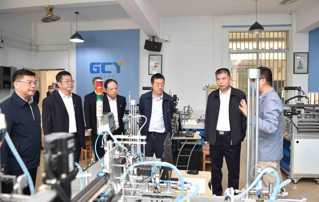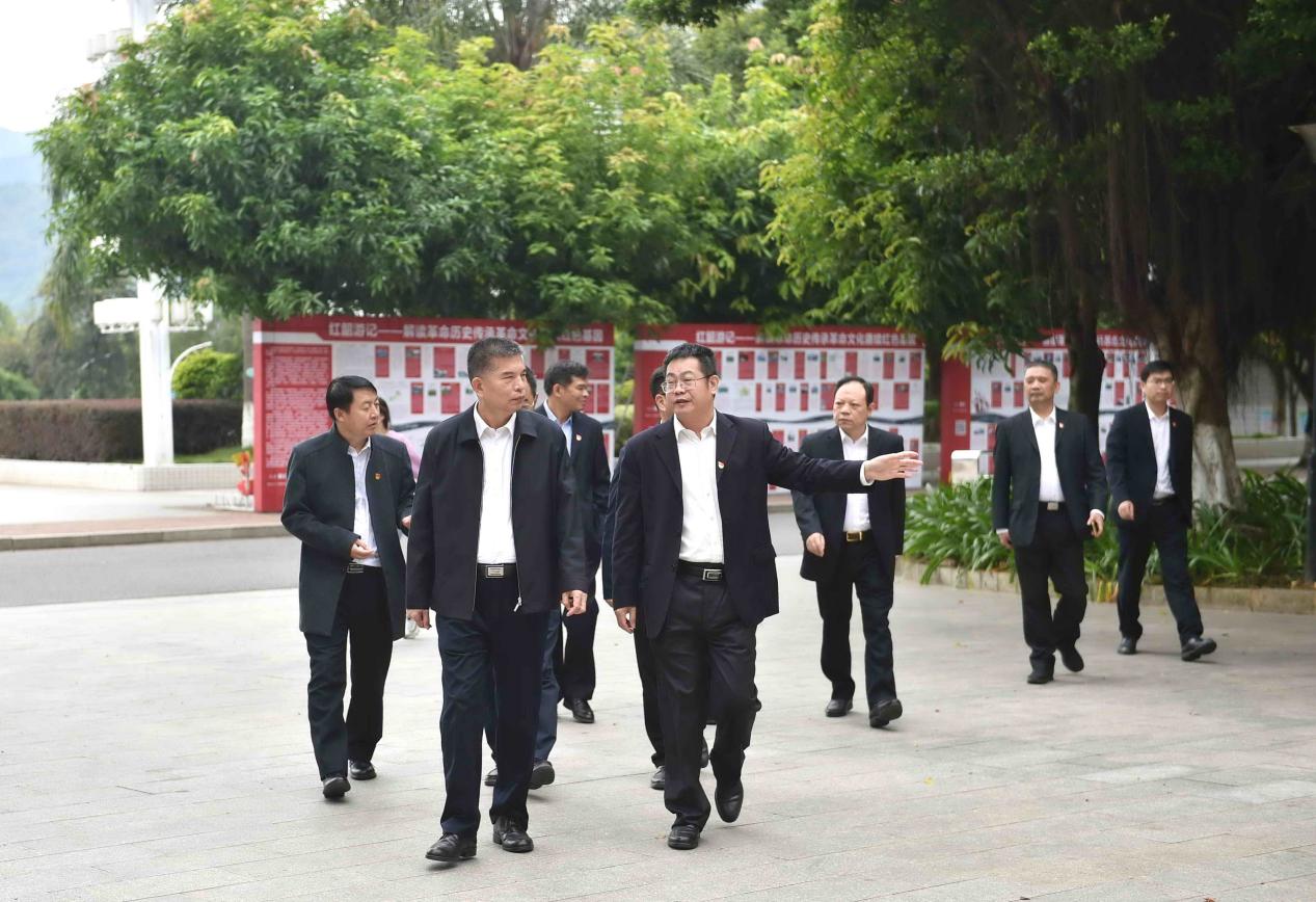 座谈会后,方迎生、吴奇峰、谭春雨、张林茂陪同省厅领导一行参观了校园。