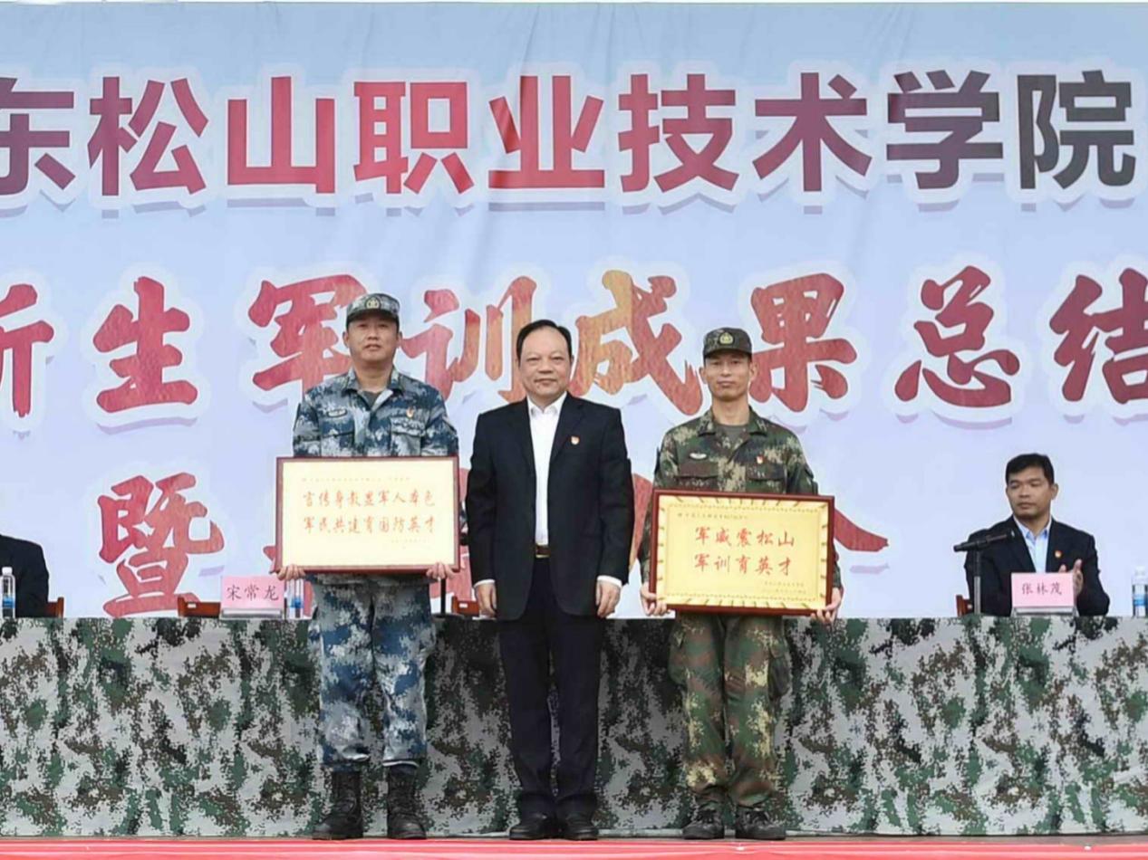 军训展英姿,沙场秋点兵。10月25日,广东松山职业技术学院2021级新生军训成果汇报暨表彰总结大会在田径场隆重举行。校长吴奇峰、党委副书记张林茂,副校长廖彩志、杨宇、佘少华,96736部队、曲江区人武部代表出席大会。大会由学校武装部部长叶采飞主持。