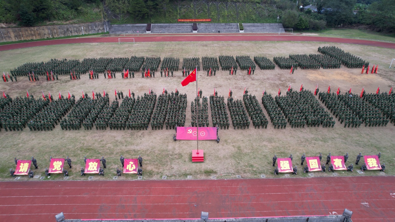 红旗猎猎,迎风飘扬。迷彩方队整齐划一,响亮的口号声此起彼伏。经过14天的艰苦训练,65个连队,3900多名参训学员身着戎装、目光坚定、身姿挺拔,列阵行进到主席台前接受检阅。国旗方队、军训团护旗方队、分列式、队列、旗语、军体拳、匕首操等特色方阵陆续上演,彰显出新一代松山学子朝气蓬勃的精神面貌和豪情万丈的昂扬斗志。新生们用“请党放心,强国有我”“崇军尚武,报效祖国”的赤子情怀,为建党百年献礼。