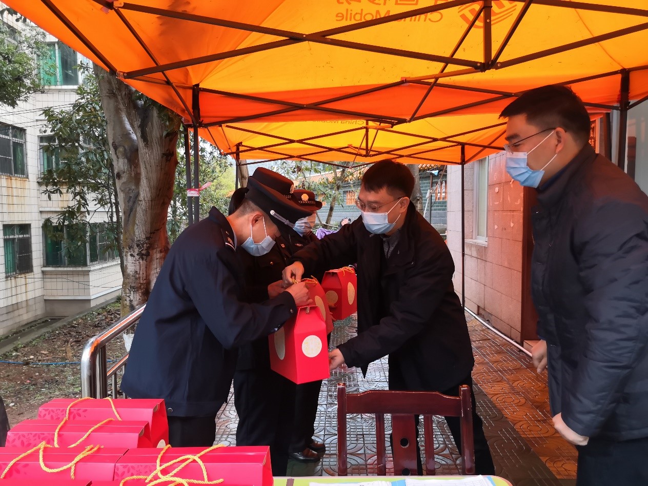 在曲江校区第一门岗,校卫队员着装整齐、队容严整,精神饱满。“祝大家新年快乐、阖家幸福、万事顺遂、虎年大吉!”杨宇一行向坚守一线的工作人员送上新春祝福,对大家忠于职守、甘于奉献给予了充分肯定。