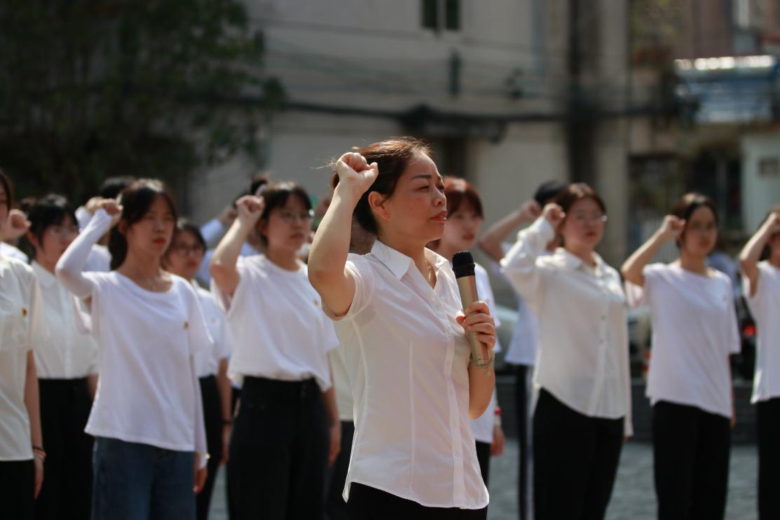 随后,在犁市当铺旧址广场前,组织参加活动的全体党员奏唱了《国际歌》,并由正式党员为新入党的预备党员们分发党员徽章,预备党员怀着激动澎湃的心情,将党员徽章郑重地戴在左胸的位置,党旗之下,握拳过肩,在党委组织部领队教师党员唐晓霞的领誓下,发出了志愿加入中国共产党的铮铮誓言,12句誓言彰显着共产党人的初心使命,集中宣誓表达着共产党员的矢志追求,这是新党员对党的庄严承诺,也是共产党员为实现人生价值做出的无悔选择。