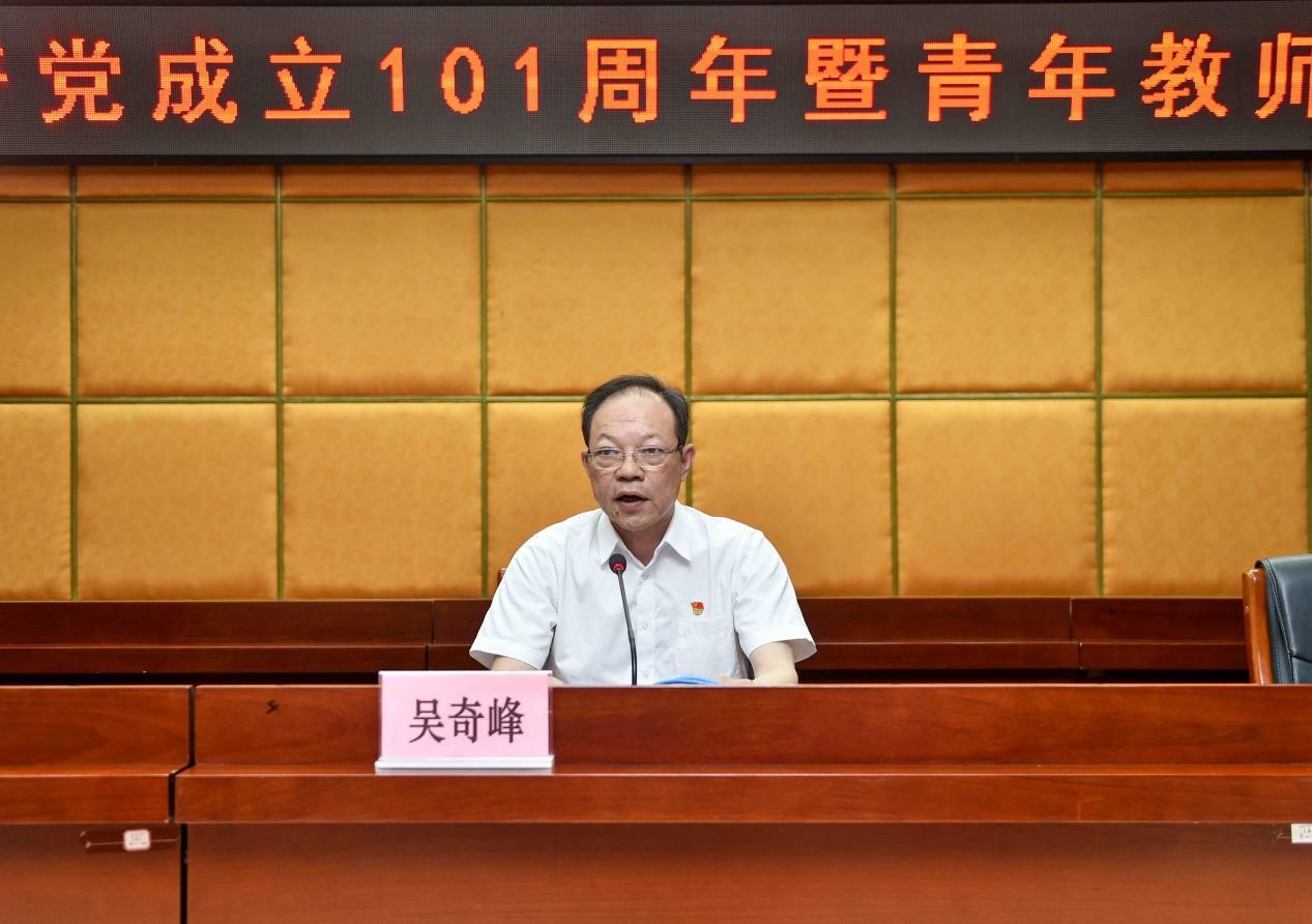 活动最后,受学校党委书记方迎生委托,吴奇峰对学校庆祝建党101周年的系列活动发表了题为《奋勇争先,再创新辉煌》讲话。吴奇峰表示,通过比赛,大家都感受到了青年教师积极向上的精神面貌,听到了青年一代铿锵有力的壮志豪言,这必将进一步激励全校师生职工在全面建设社会主义现代化国家新征程中展现新作为、体现新担当。