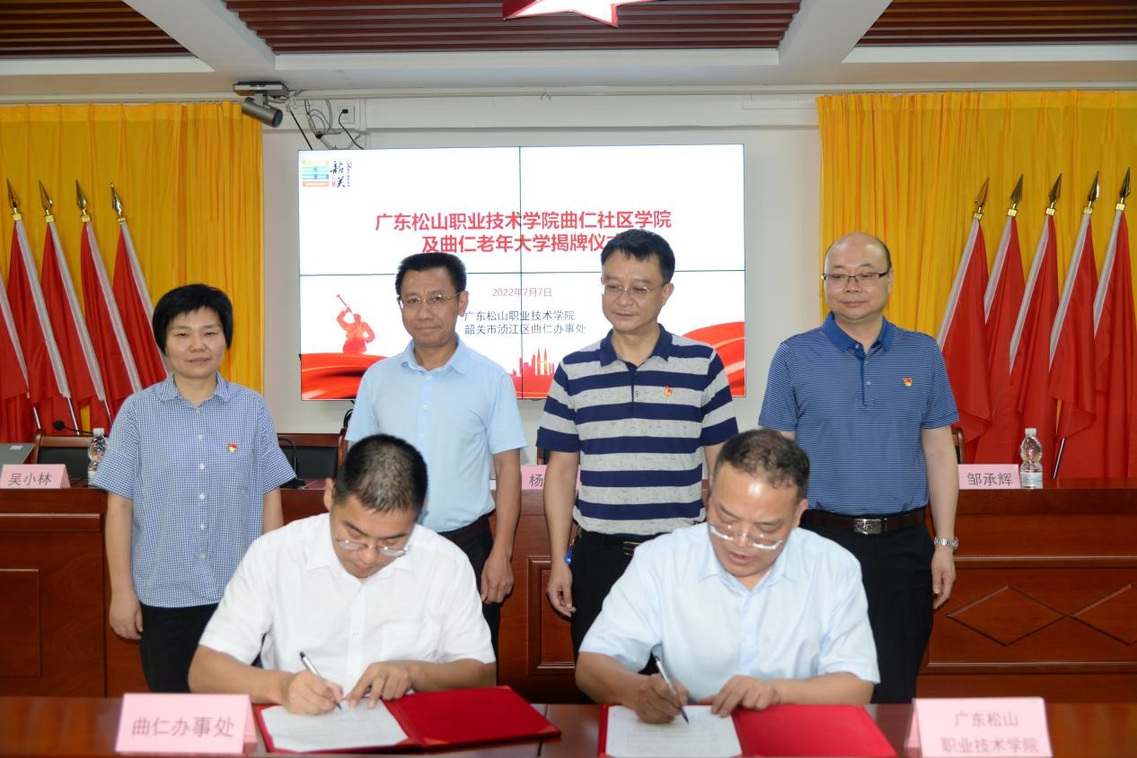 为贯彻党的十九大提出的“加快建设学习型社会,大力提高国民素质”战略,全面落实《广东省教育厅关于大力发展社区教育推进学习型社会建设的意见》的重要内容, 7月7日,广东松山职业技术学院与曲仁办事处共建的社区学院和老年大学在曲仁办事处举行了签约揭牌仪式。学校副校长杨宇,韶关市浈江区委常委、宣传部部长李红保,区政协副主席、曲仁党工委书记钟荔出席仪式,仪式由曲仁办事处主任吴小林主持。