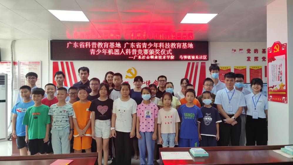 7月27日,由学校与马坝镇城东社区党委联合主办的“科普走进社区、放飞科学梦想”青少年机器人科普竞赛颁奖仪式在城东社区党群服务中心举行。学校相关单位(部门)负责同志、城东社区党委书记钟辉出席仪式,学校科普队成员、社区参赛小朋友及家长等约40余人参加仪式。