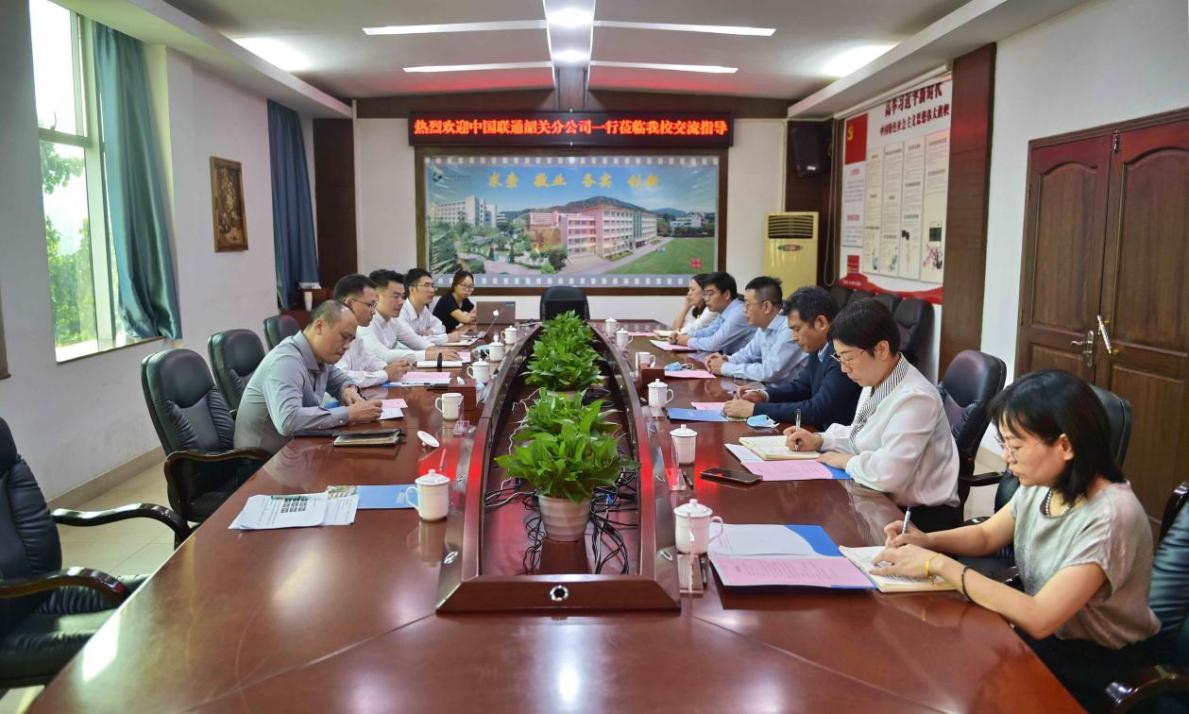 10月25日,中国联合网络通信有限公司韶关市分公司(以下简称:韶关联通)党委书记、总经理彭文标一行5人到我校交流。学校党委书记方迎生热忱接待了彭文标一行,党委副书记张林茂陪同交流,党政办、对外合作中心、实训中心、信息与现代教育技术中心、计算机与信息工程学院等相关单位负责人参加交流。