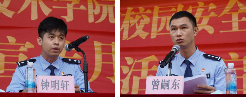 11月7日,我校举办校园安全知识讲座暨“119”消防宣传月系列安全教育活动。活动邀请了韶关市公安局曲江分局刑事侦查副大队长庄松涛、禁毒大队副队长曾嗣东、曲江区消防救援大队宣传员何燕怡等为学校2022级4000余名新生授课,保卫部、学生工作部、军训教官团有关领导及工作人员参加活动。