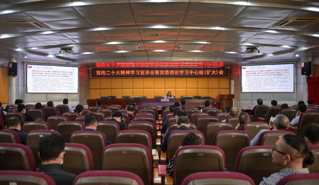 根据学校党委统一部署,11月9日下午,我校在学术报告厅二楼召开党的二十大精神学习宣讲会暨党委理论学习中心组(扩大)会。韶关市委宣讲团成员、我校马克思主义学院院长范卉敏作专题宣讲报告。校领导方迎生、吴奇峰、谭春雨、张林茂、杨宇、佘少华等出席宣讲会,科级及以上干部、党支部书记参会学习。