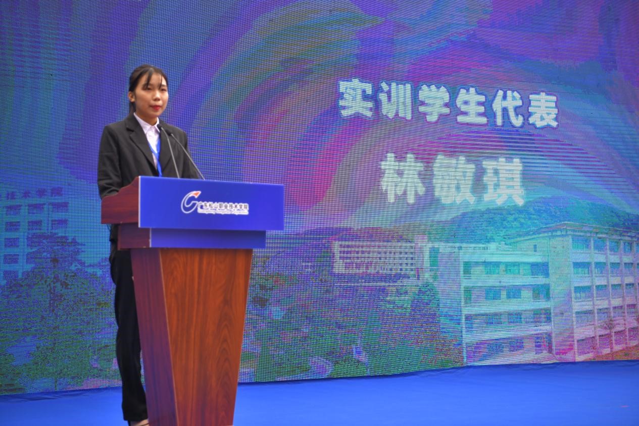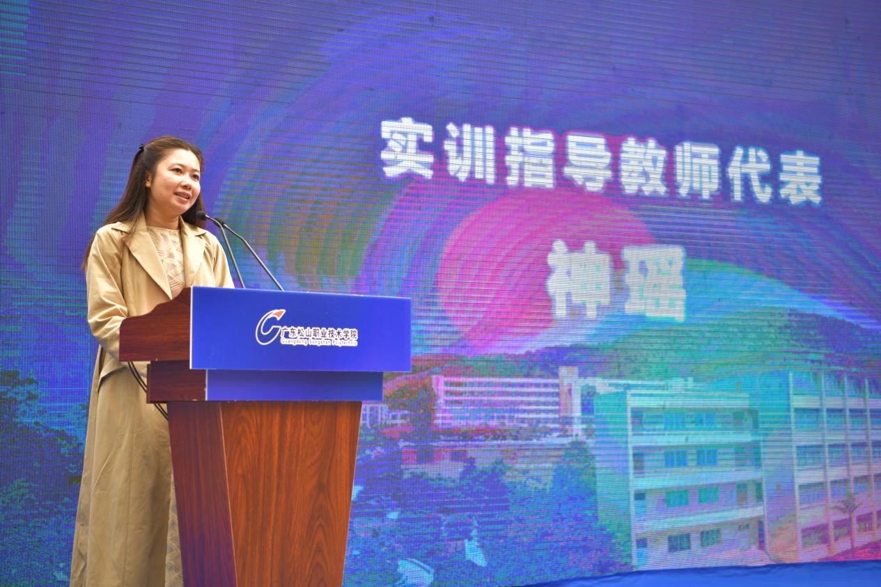 实训指导教师代表神瑶介绍了本次商贸实训周相关专业实践教学活动内容及开展方式,主要通过开展模拟国际贸易洽谈会、数字贸易技能实践等活动,锻炼学生的商贸综合技能,使学生成为“精英语、通商务”的国际贸易人才,成为新时代的好青年,成为社会主义的建设者和接班人。