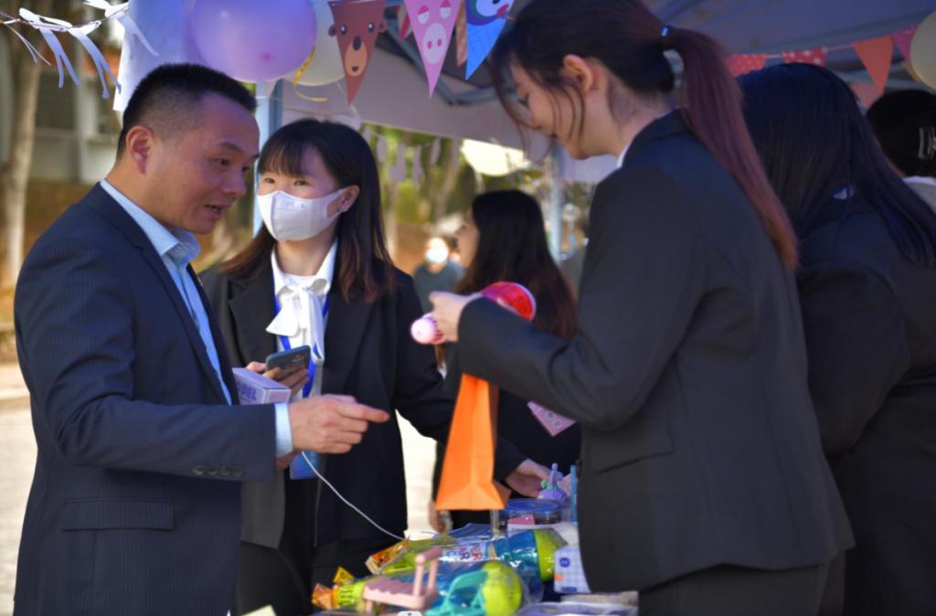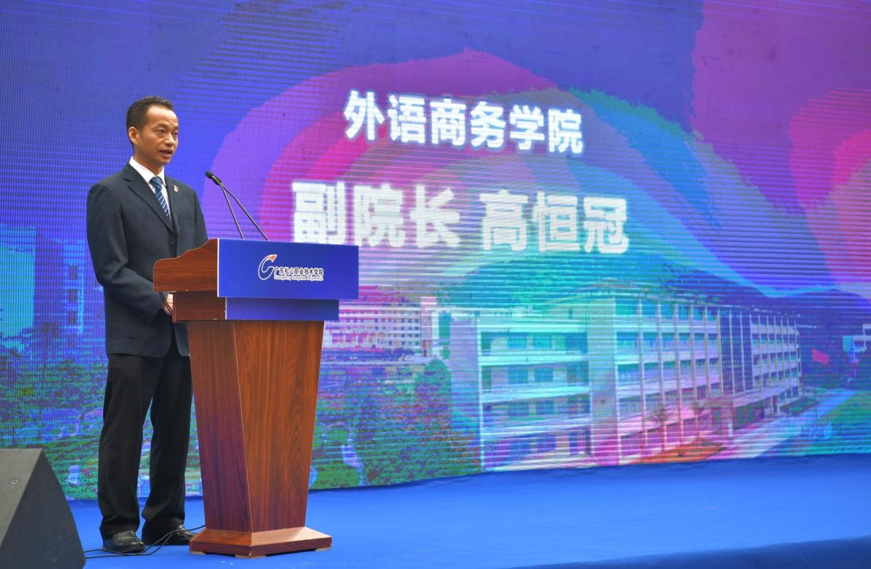 高恒冠在开幕式上致辞,要求指导老师要严格按照商贸实训周的实施方案全力做好本次实践课程的教学、指导和考核评价,各位同学务必要诚信经营,服从管理,在老师指导下有序开展各项实践教学活动,并勉励同学们在商贸实训周中勤学苦练,把课堂上所学的专业知识灵活运用到实践中来,做到学有所得,学有所获,学有所用,努力成为精英语、通商务、德智体美劳全面发展的复合型技术技能人才!