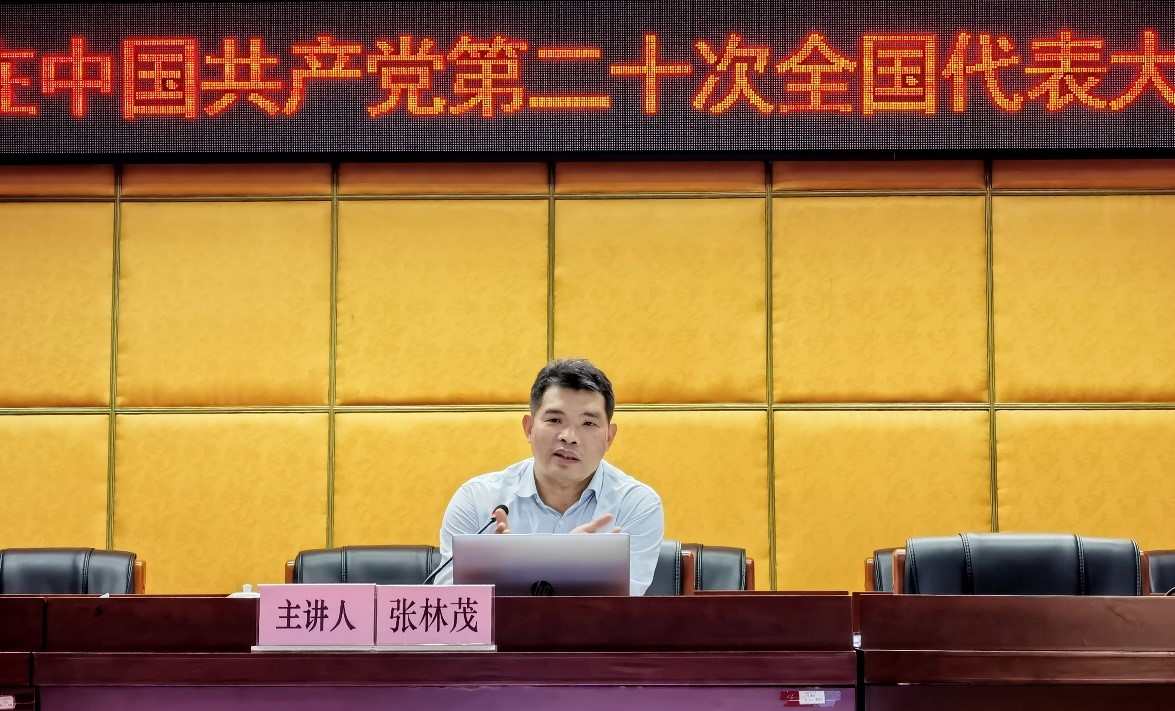 11月10日下午,校党委副书记张林茂讲授了一堂题为“学习贯彻习近平总书记在中国共产党第二十次全国代表大会上的报告”的专题党课,校学工系统及马克思主义学院全体教职工到场聆听学习。