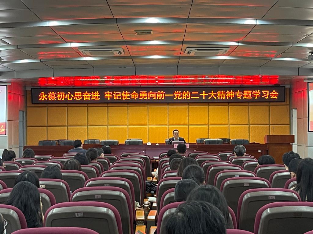为深入学习贯彻党的二十大精神,11月17日下午,副校长张志在学术报告厅(宽C201)以“永葆初心思奋进,牢记使命勇向前”主题,为教务部、实训中心和外语商务学院60余名党员教师上了一堂专题党课,宣讲党的二十大精神。