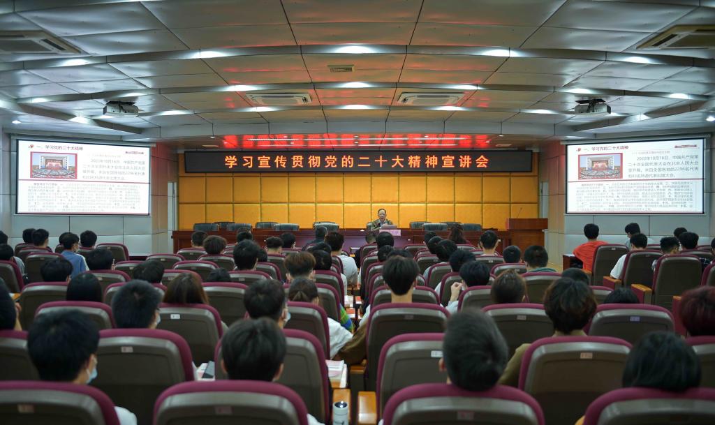 11月22日上午,学校校长吴奇峰在学术报告厅二楼为机械工程学院2022级新能源汽车技术班、汽车营销与服务班共100余名新生专题宣讲党的二十大精神。